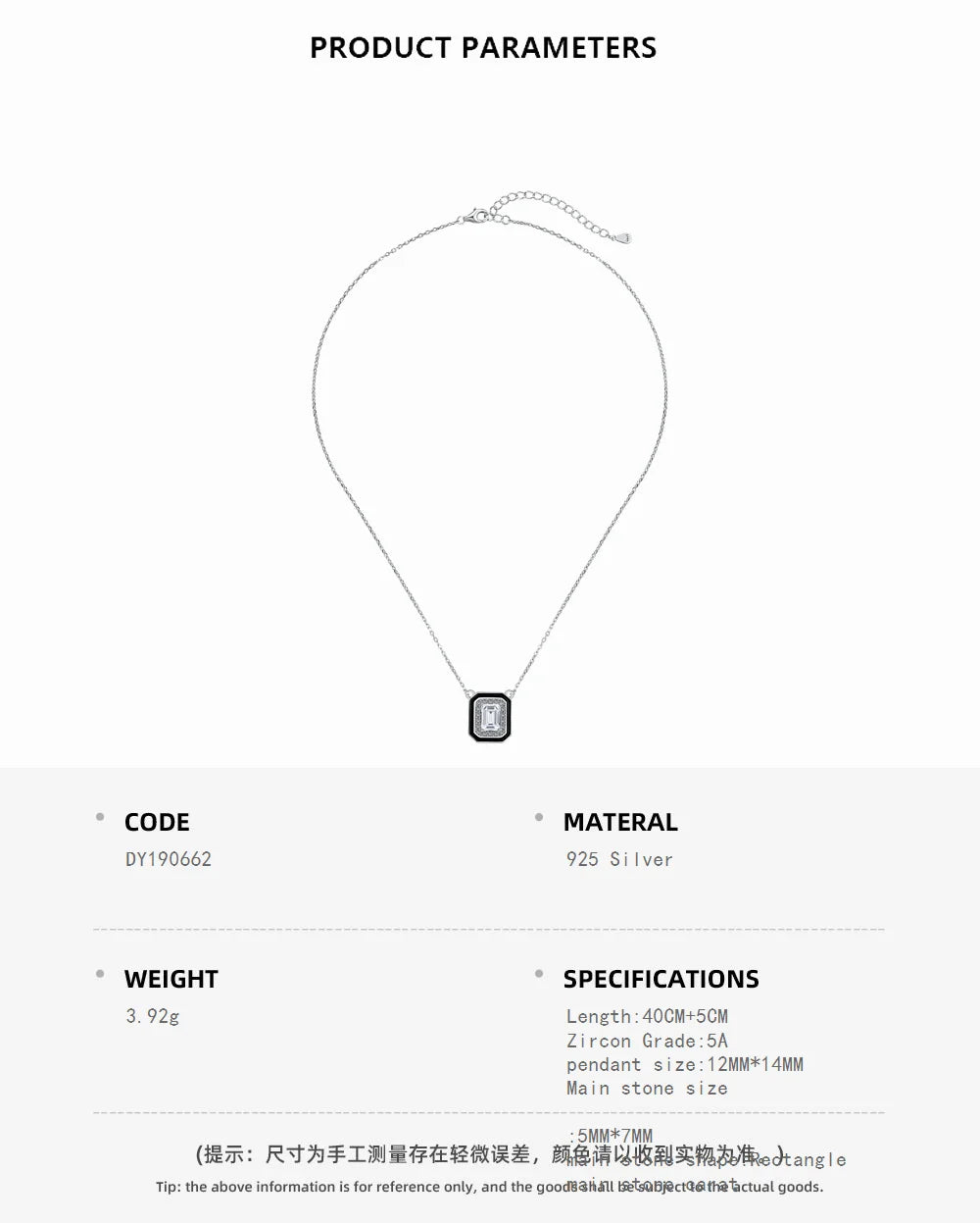 Aetolia Trendy Statement Black Cz Cubic Zirconia Square Necklace Elegant Sterling Silver 925 Women Zircon Necklaces Jewelry Set