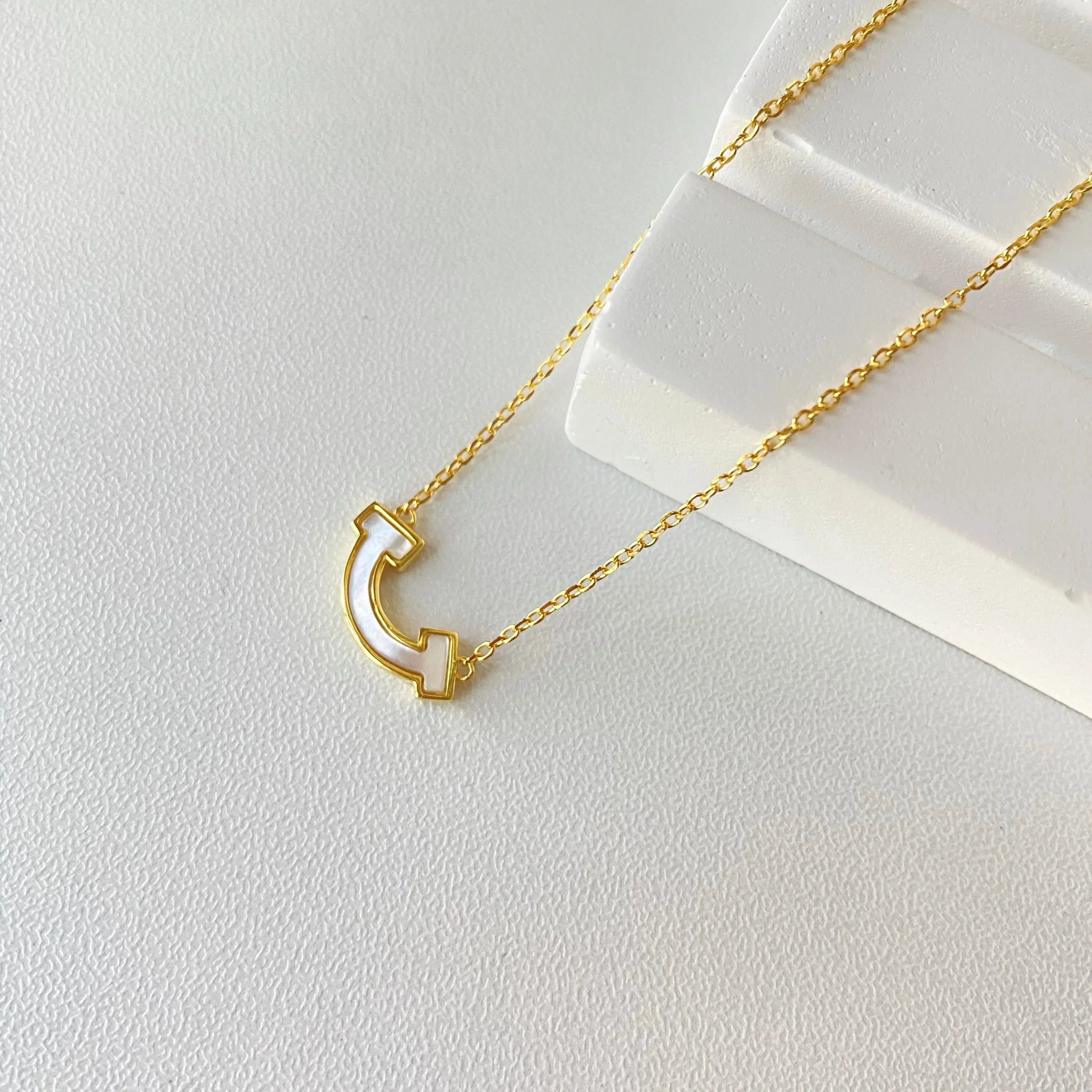 Aetolia trendy sterling silver smile shell pendant statement gold plated stackable necklaces chain women S925 necklace