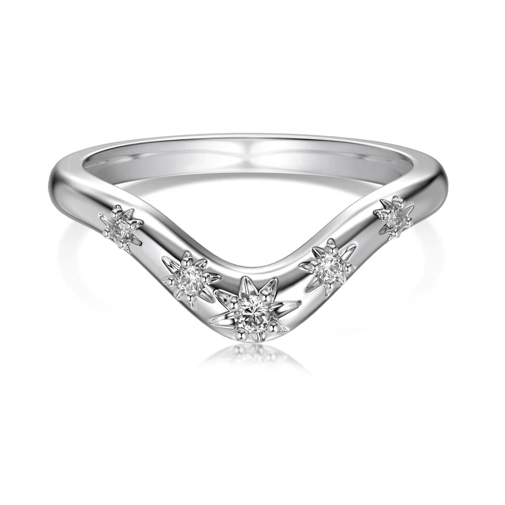Aetolia Wave Sterling Silver S925 Jewelry Stacking Ring Custom Cz Cubic Zircon Irregular Design Minimalist V Shape Rings For Women