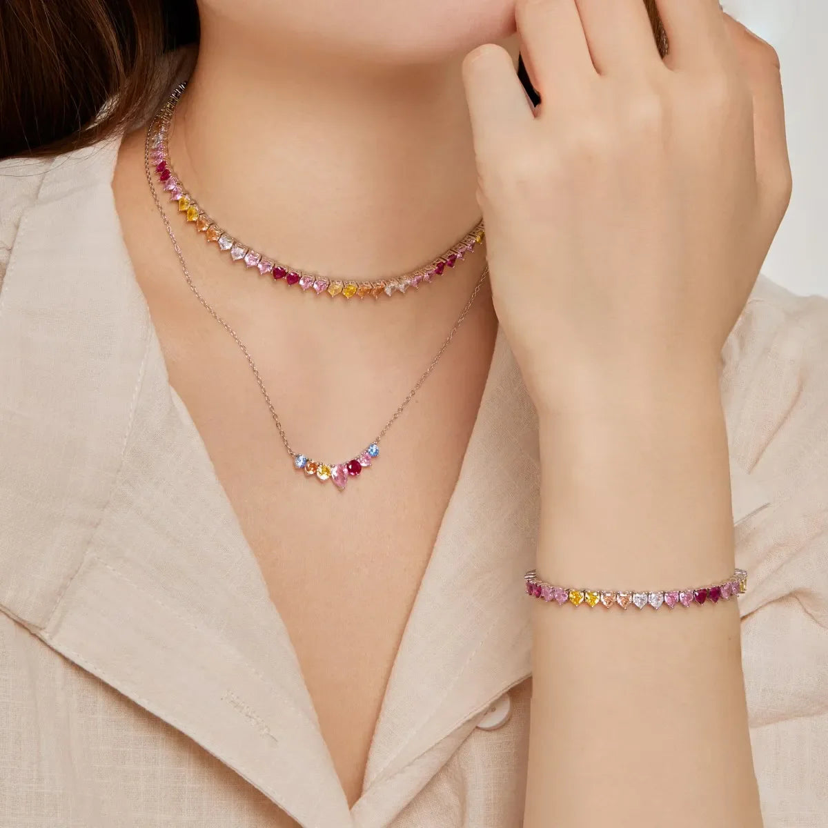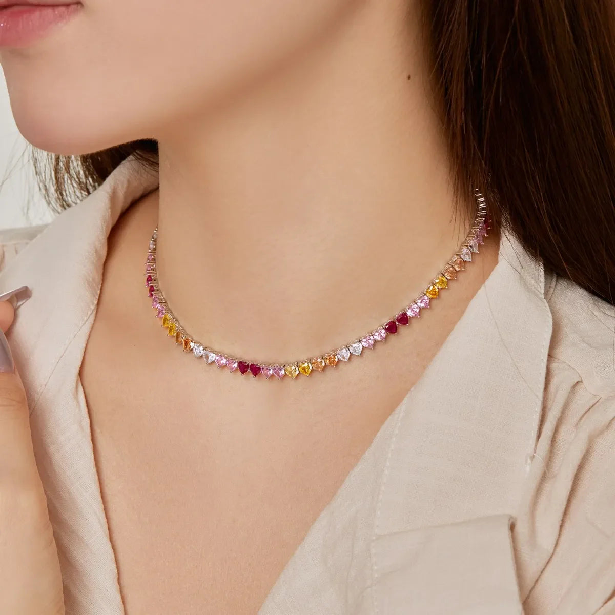 Aetolia Wholesale 925 Sterling Silver Women Tennis Necklace Diamond Love Color Zirconium Inlaid Wedding Design Necklaces For Women