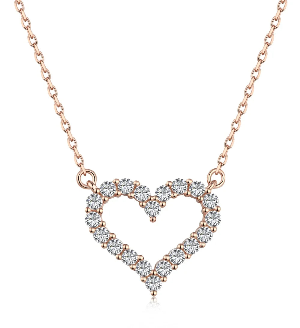 Aetolia Wholesale Clavicle Chain S925 Silver 18K Rose Gold Necklace CZ Cubic Zirconia Hollow Heart Pendant Necklaces For Women