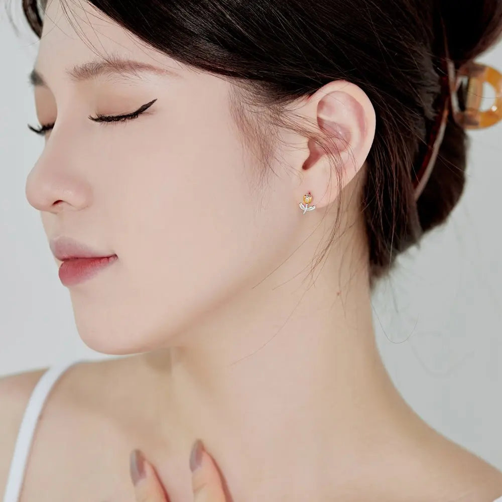 Aetolia Wholesale Elegant S925 Sterling Silver Needle Earrings Enamel 18K Gold Plated Stud Earrings Tulip Flower Earring For Women