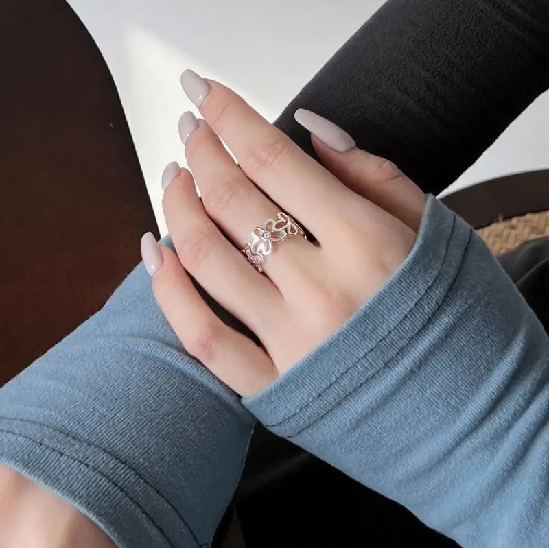 Aetolia Wholesale Hot Sale 925 Sterling Silver Cute Hollow Flower Open Adjustable Ring Fine Jewelry Rings For Women Party Gifts