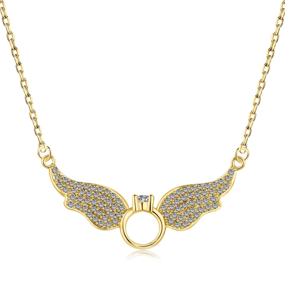 Aetolia Wholesale New Arrival Jewelry Wing Shape Necklace Pendant 18K Gold Plated S925 Silver Necklaces With Cz Stone For Women