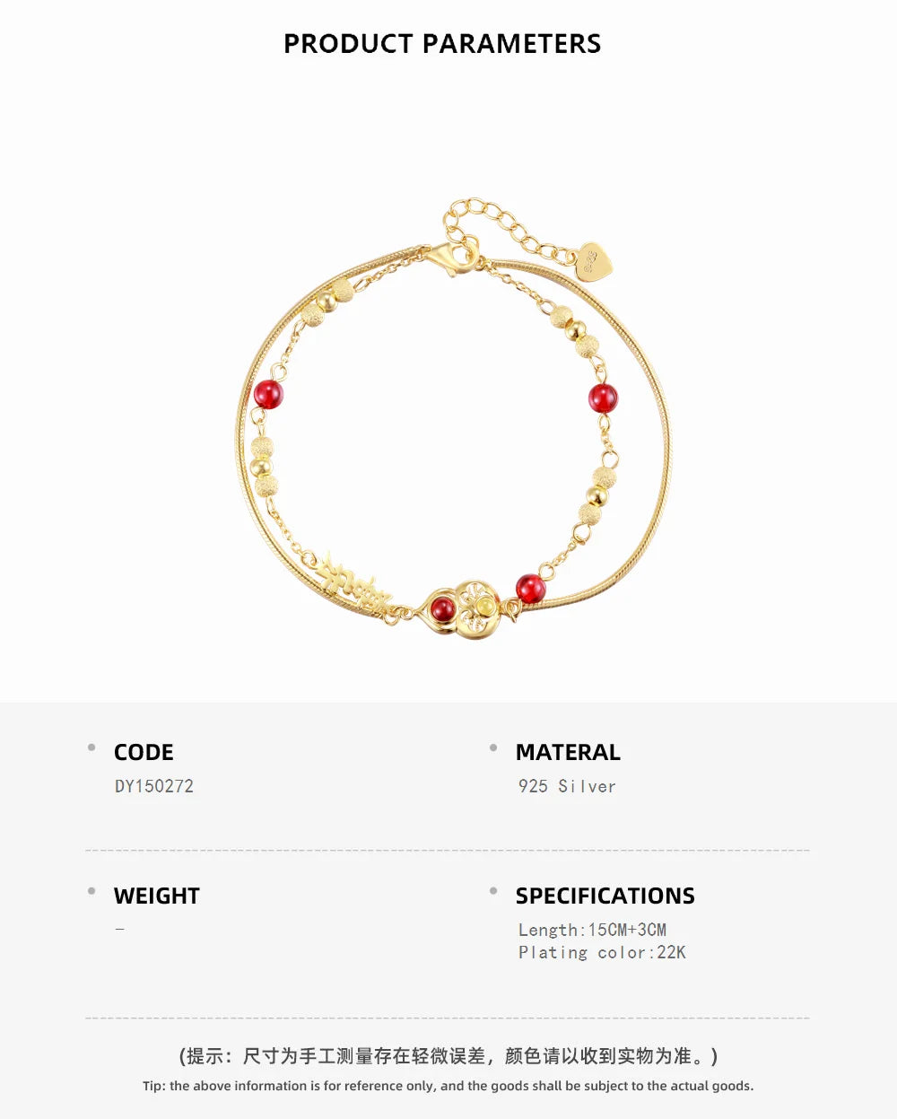 Aetolia Wholesale Price 925 Sterling Silver Double Layer Chain Link 22K Gold Plated Chalcedony Garnet Gourd Bracelets For Women