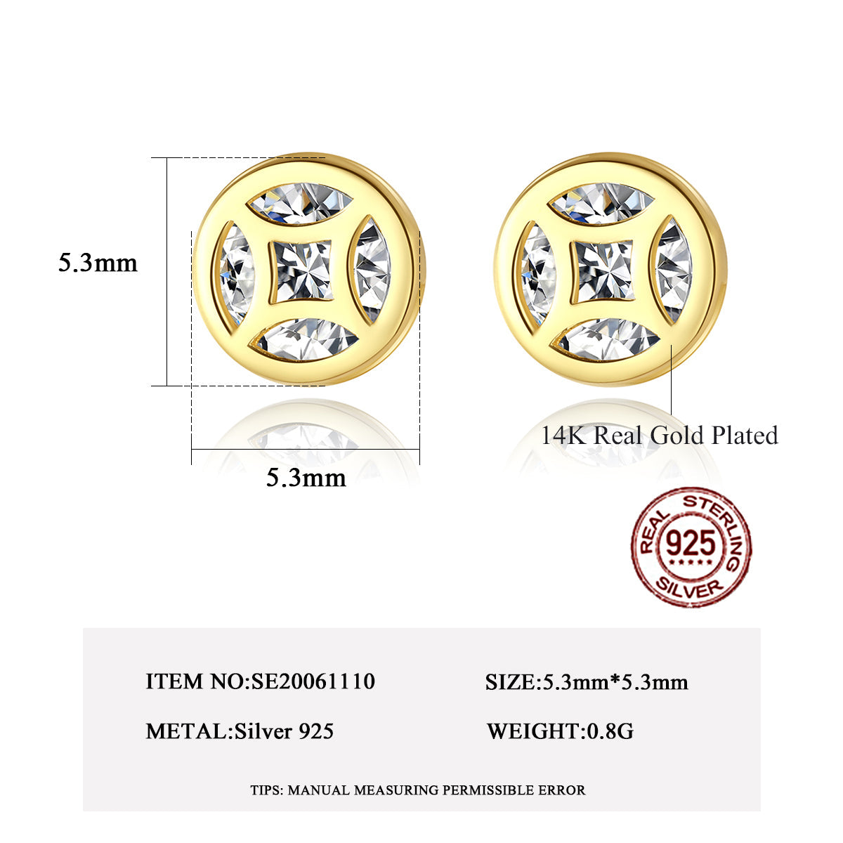 Aetolia 925 Sterling Silver 18K Gold Plated Chinese ancient Copper Coin Stud Earrings SE20061110