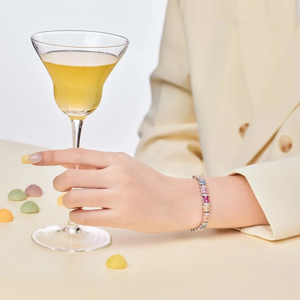 Aetolia Beautiful Waterdrop Pear Shape 925 Sterling Silver Bracelet Jewelry Set Cubic Zirconia Pink Stone Diamond Tennis Bracelets Women