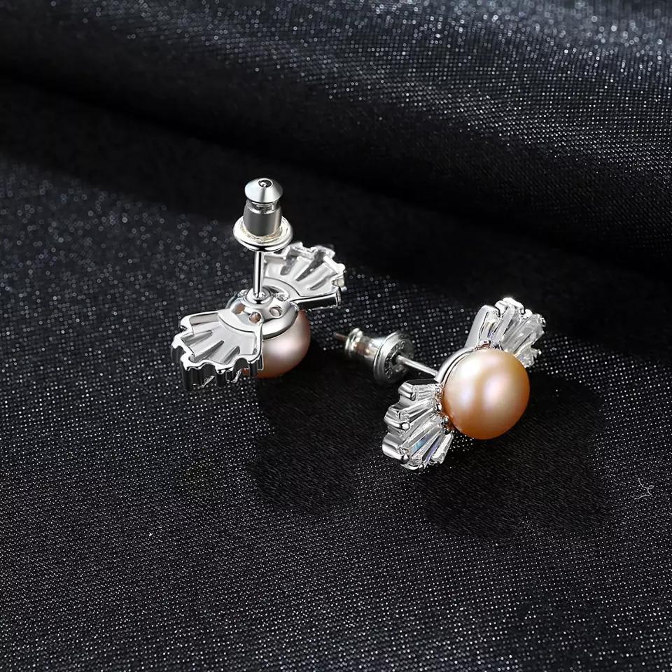 Aetolia 925 Sterling Silver Natural Freshwater Pearl Earrings Bowknot Stud Earrings FE0059