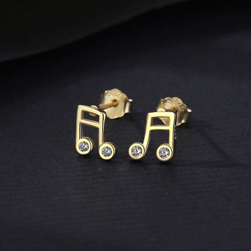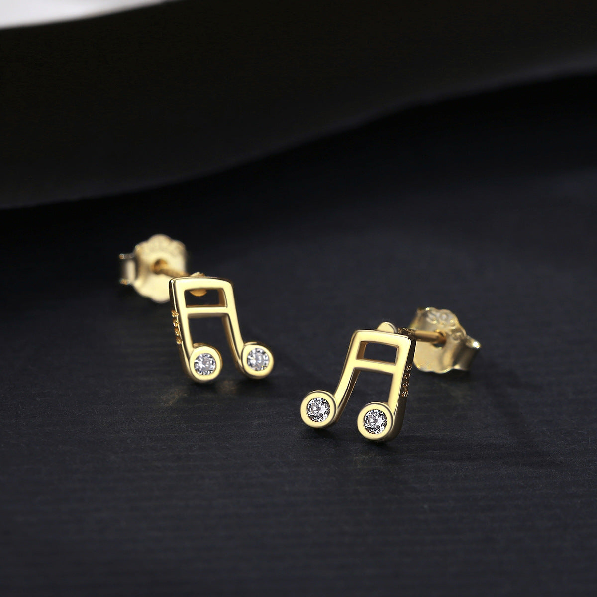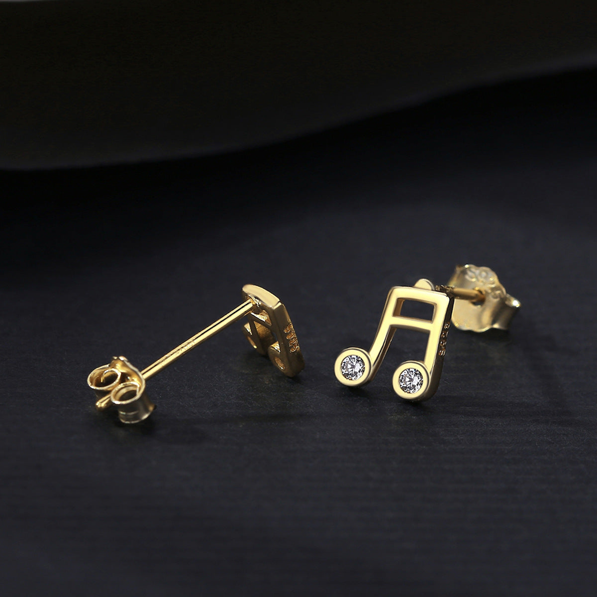 Aetolia 925 Sterling Silver 18K Gold Plated Charm Muisc Note Bezel Set Stud Earrings SE20061111