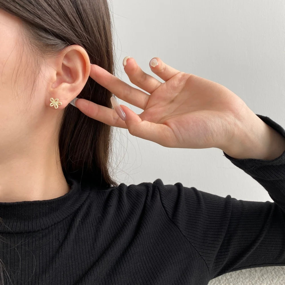 Aetolia Classic S925 Sterling Silver Earring 18K Gold Cz Cubic Zircon Sunflower Stud Earrings Jewelry Women Ladies Banquet Wholesale