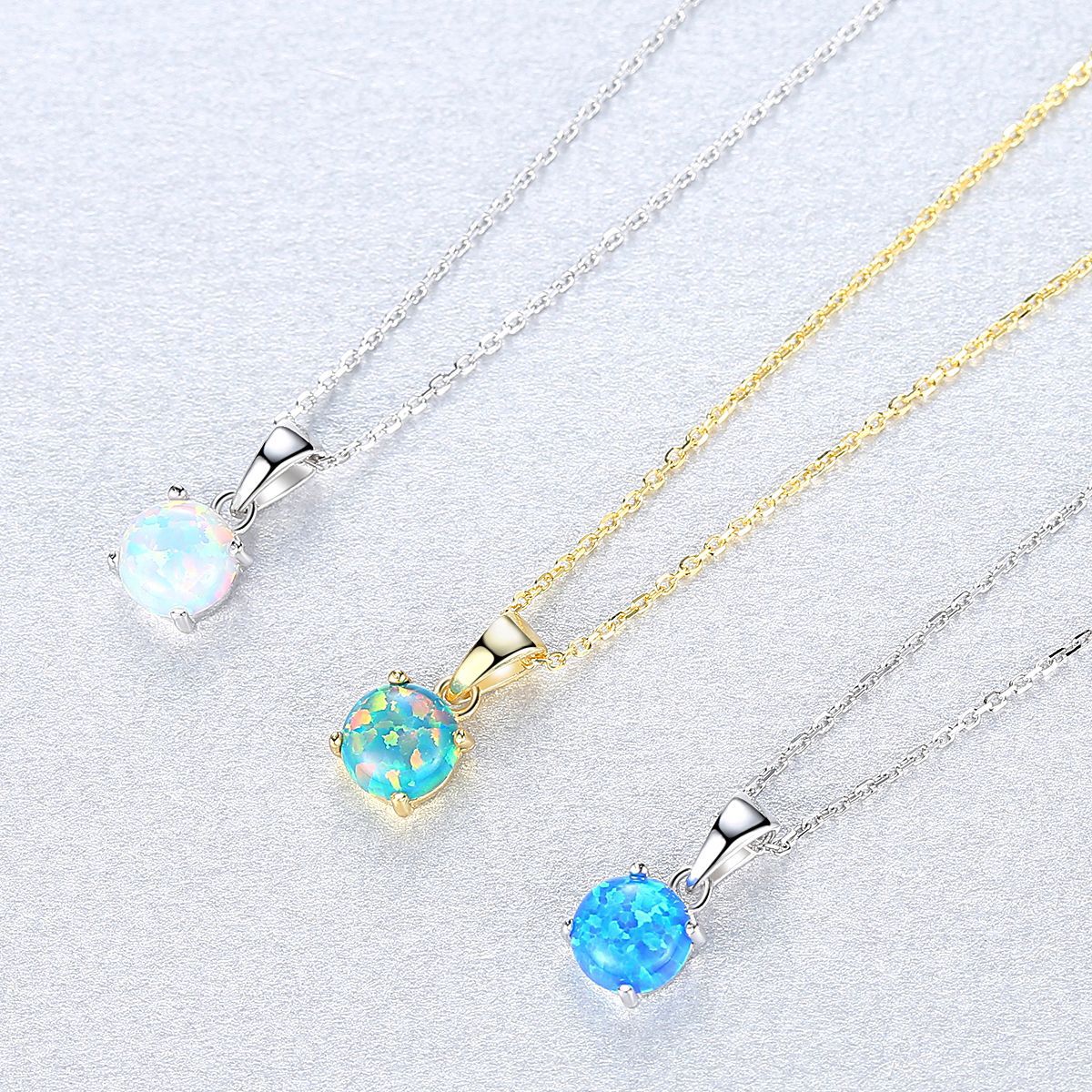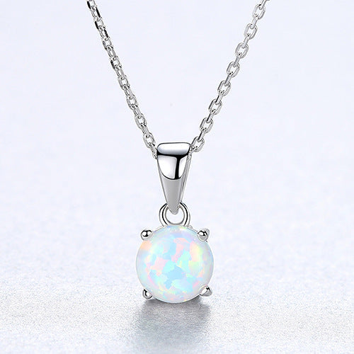 Aetolia 925 Sterling Silver Opal Necklace Colorful Round Opal Pendant Necklace SN0278