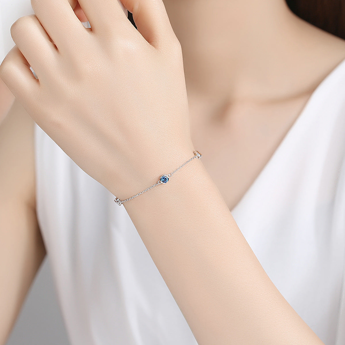 Aetolia 925 Sterling Silver 18K Gold Plated Bracelet Colorful Topaz Gemstone Chain & Link Bracelet SB0070