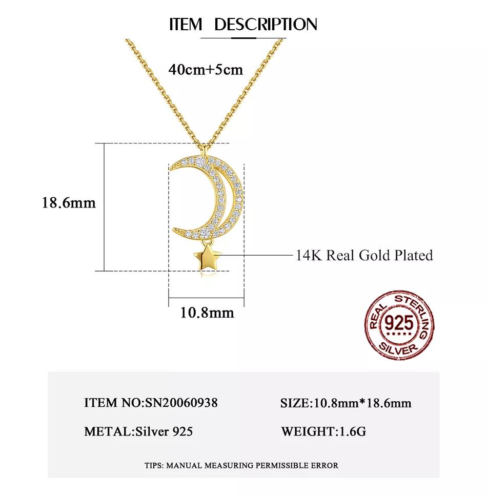 Aetolia 925 Sterling Silver 18K Gold Plated Crescent Moon Pendant Necklace SN20060938