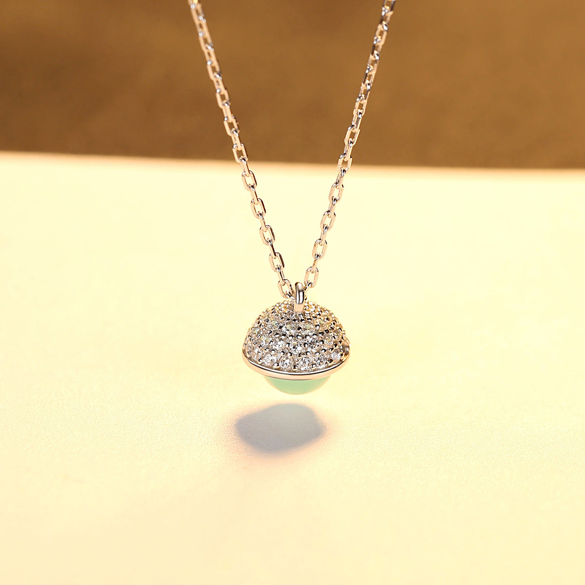 Aetolia 925 Sterling Silver 18K Gold Plated Trendy Green Crystal Cubic Zirconia Pendant Necklace SN-462