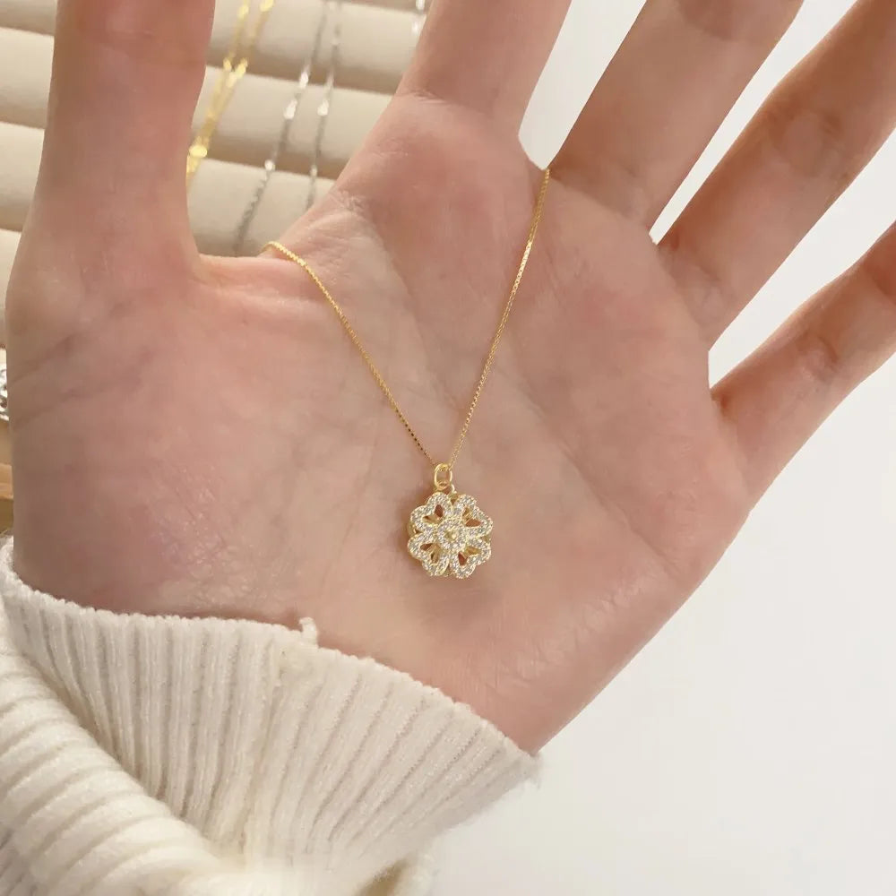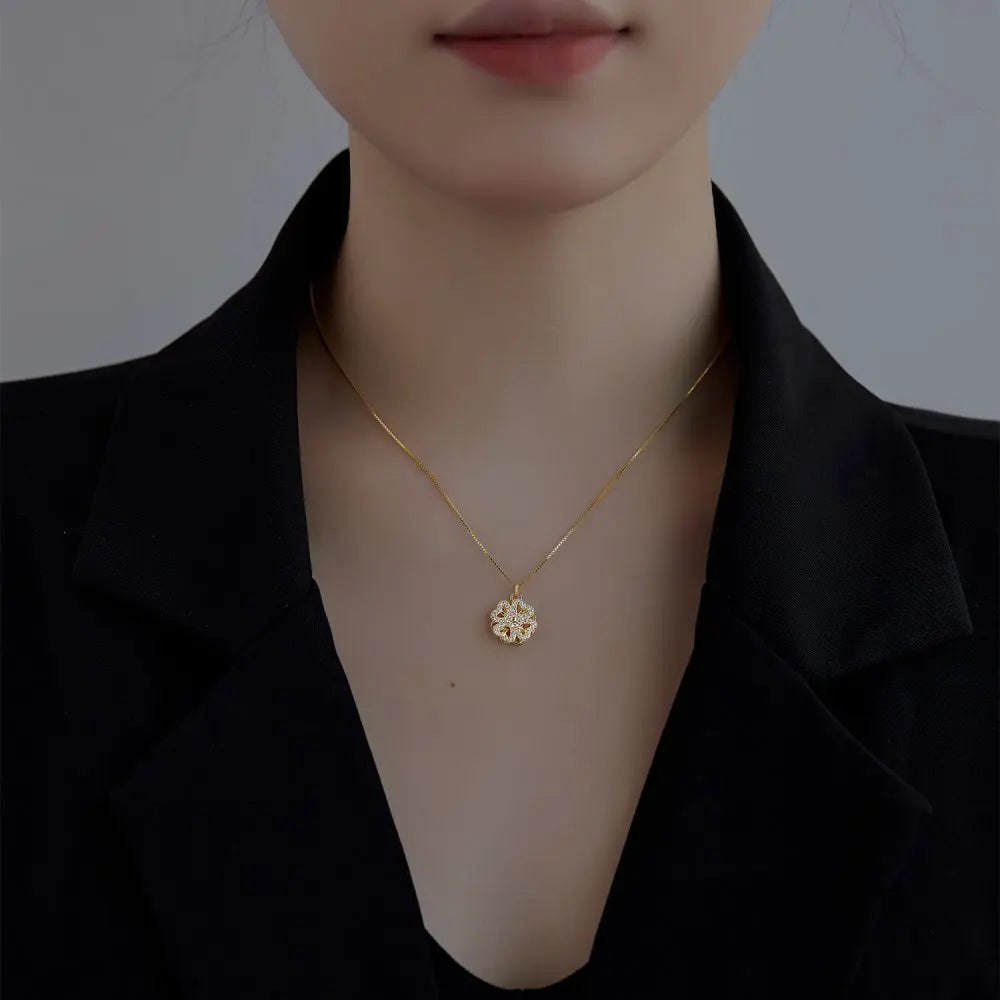 Aetolia Custom 925 Sterling Silver 18K Gold Plated Necklaces Four-Leaf Clover Pendant Spinner Necklace Jewelry Lucky Necklaces For Women