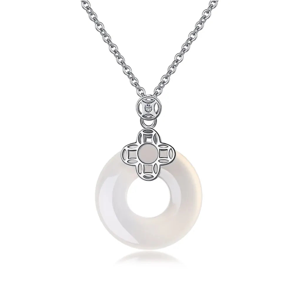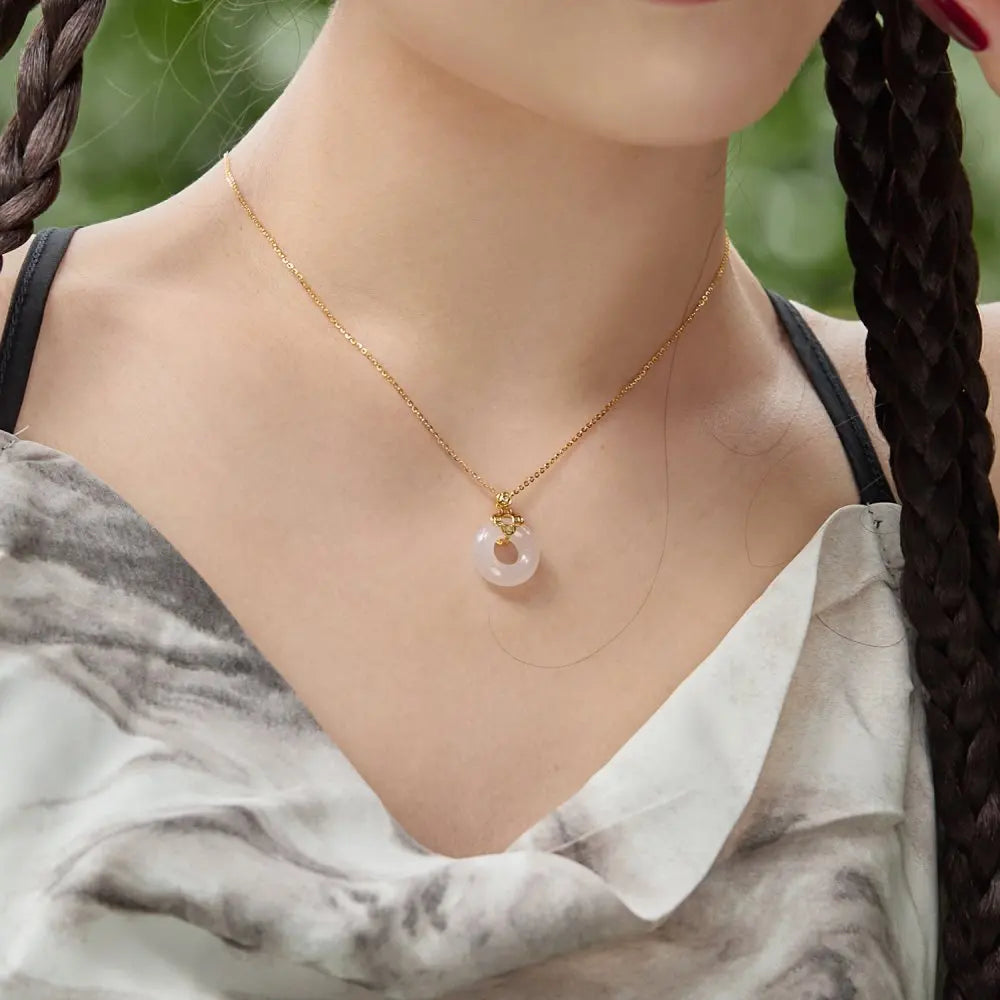 Aetolia Custom 925 Sterling Silver Lucky Buckle Hollow Round Pendant Luxury High-End 18K Gold Plated Hotan Jade Necklaces For Women