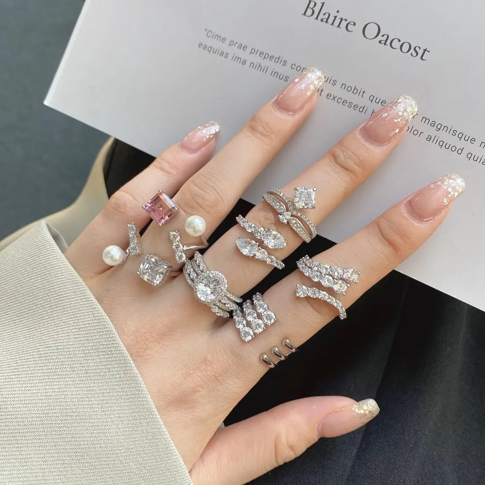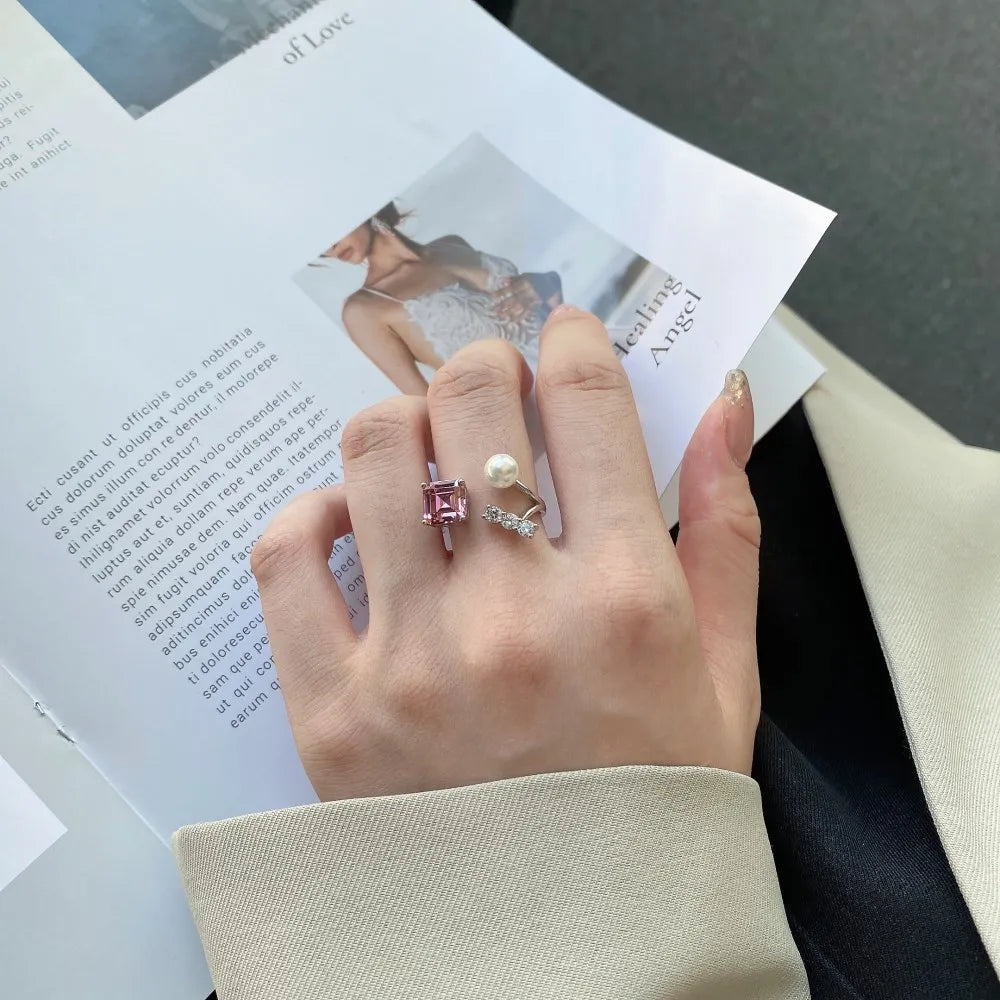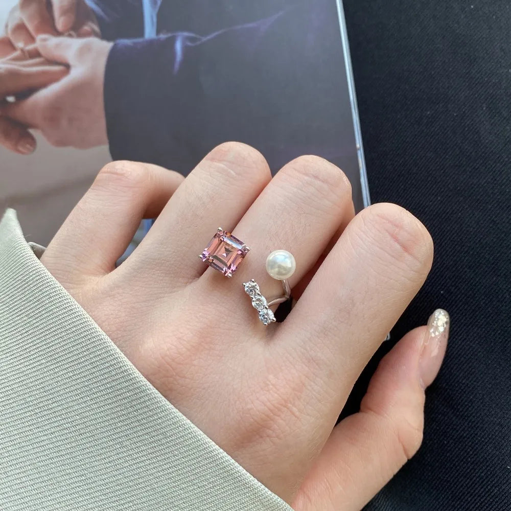 Aetolia Custom 925 Sterling Sliver Irregular Ring For Women Cubic Zirconia Shell Pearl Rings Statement Elegant Adjustable Open Jewelry