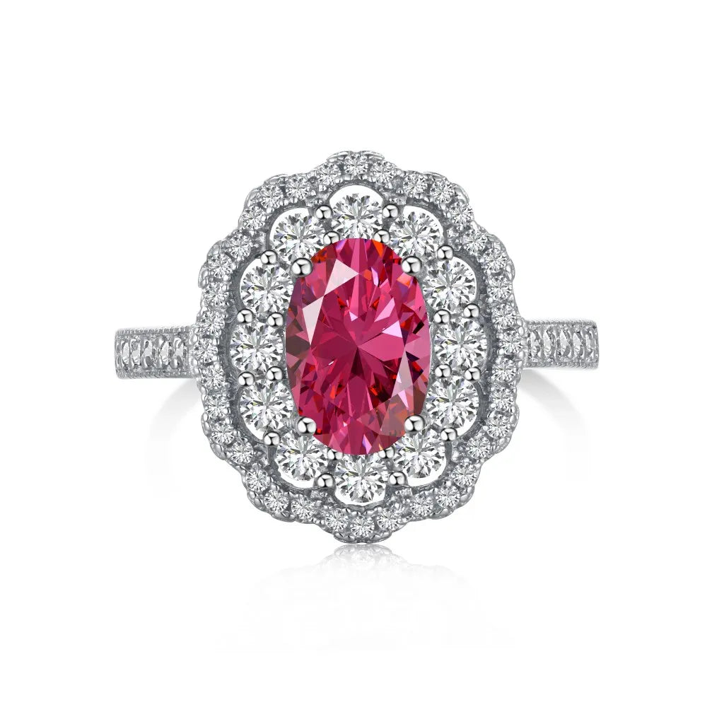 Aetolia Custom Flower Shape Cz Cubic Zirconia Jewelry Ruby 925 Sterling Silver Ring Engagement Wedding Eternity Band Rings For Women