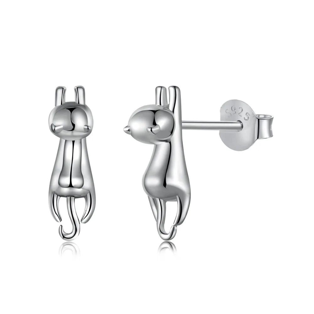 Aetolia cute New Arrival Hypoallergenic Design Cute S925 Sterling Silver Rhodium Plated Cat Shape Stud Earrings for Women Girls Children