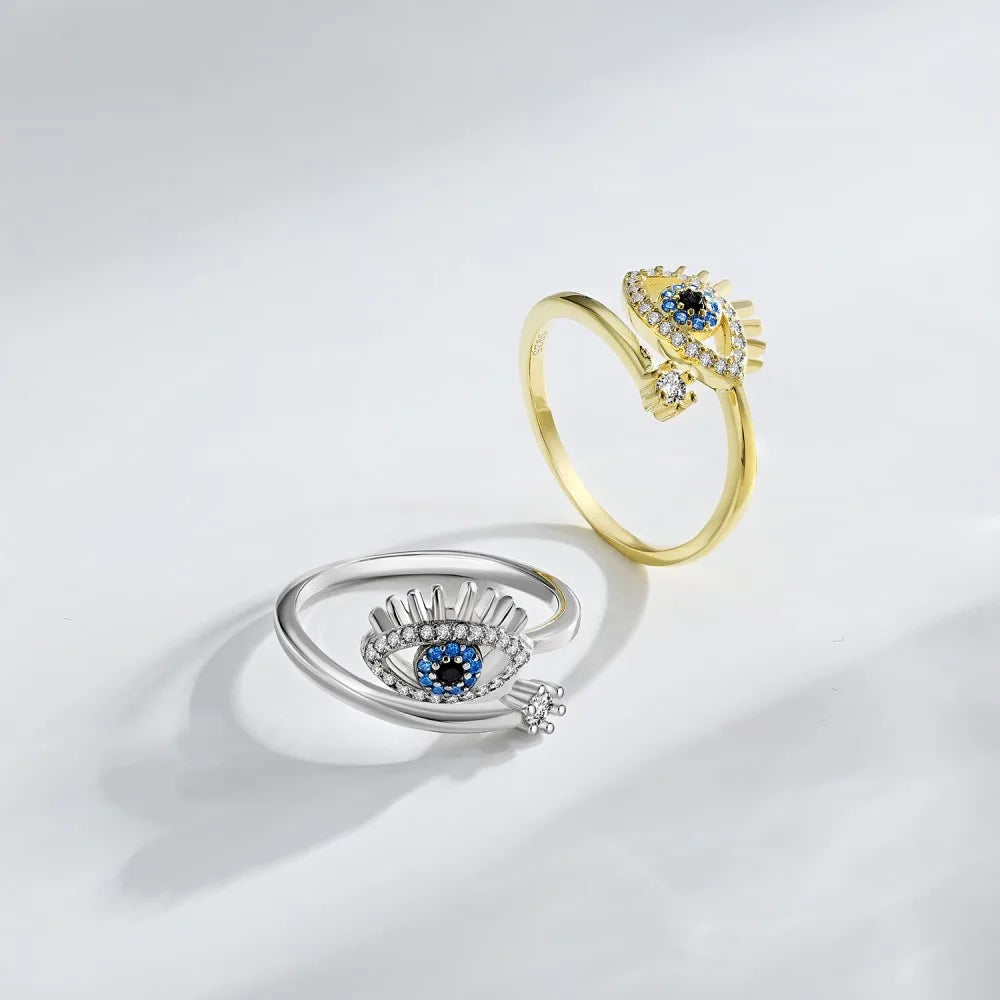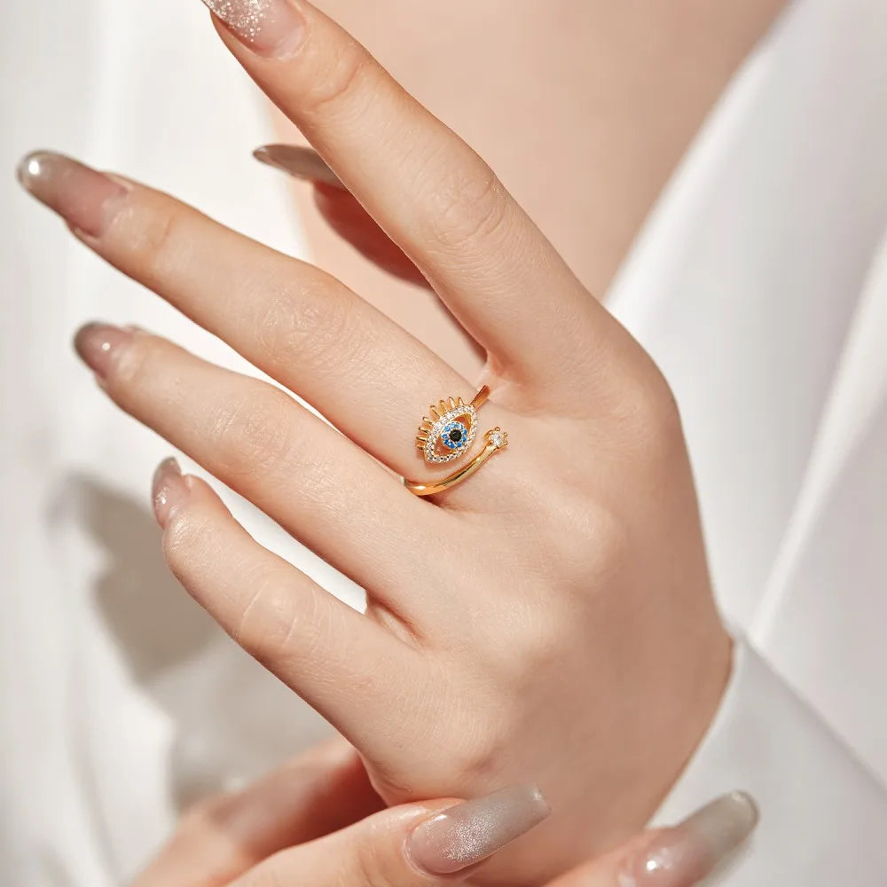 Aetolia Dainty Blue Turkish Devil Eyes Diamond Rings 925 Silver 18K Gold Plated Adjustable Statement Zircon Devil Eyes Rings For Women