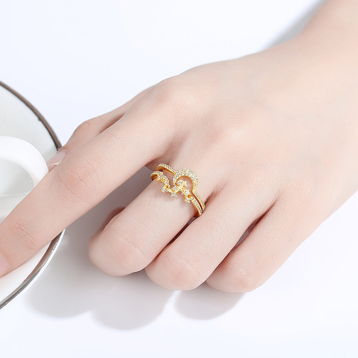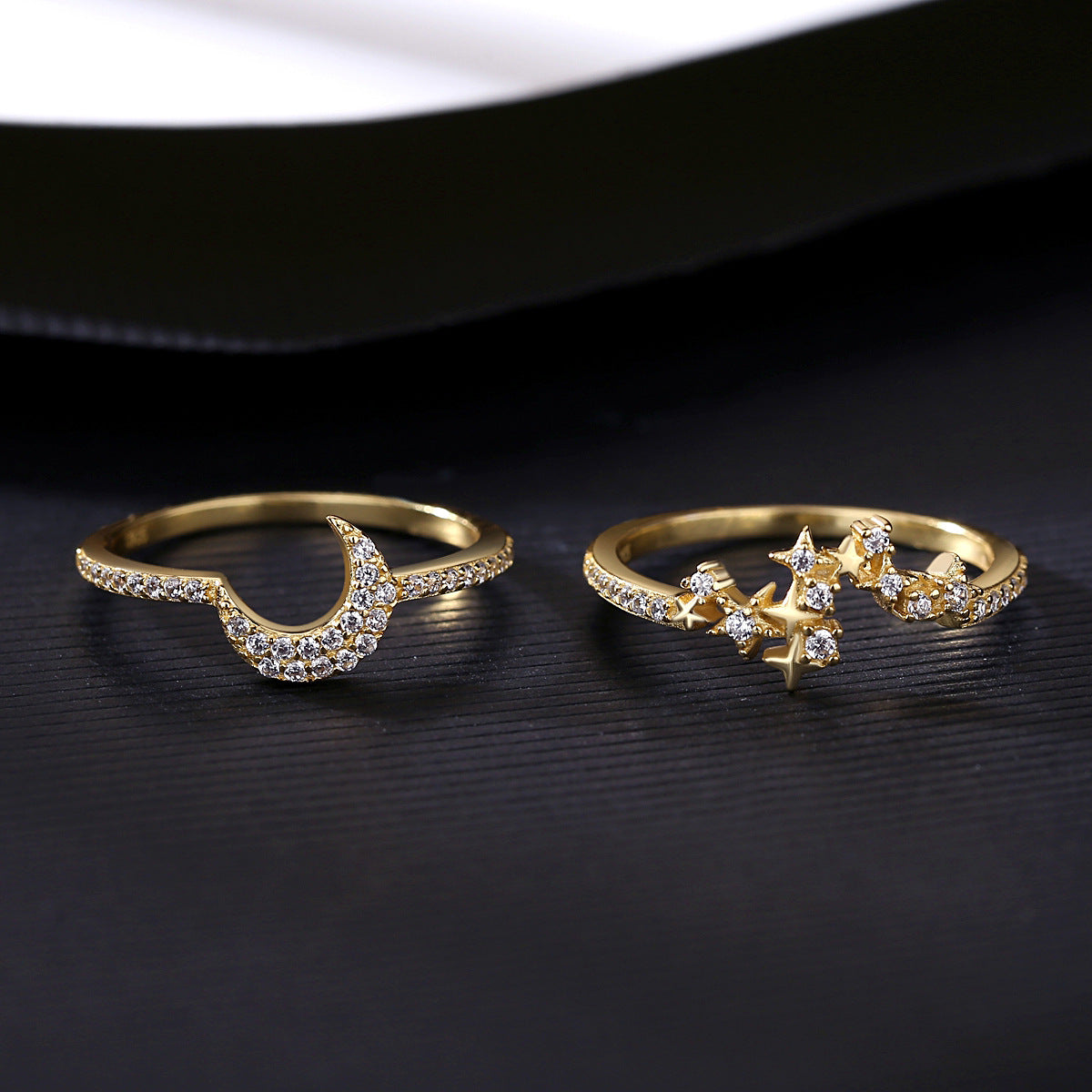 Aetolia 925 Sterling Silver 18K Gold Plated Dazzling Moon and Star Single Row Rings Set SR20061327