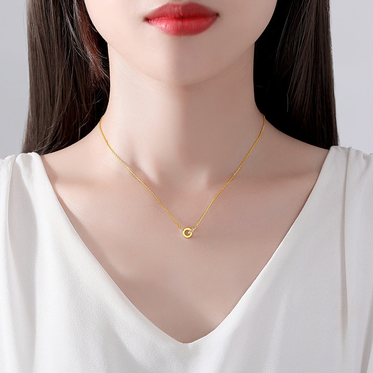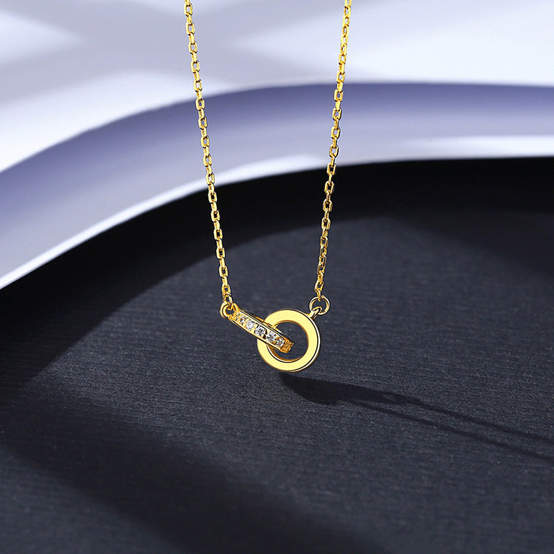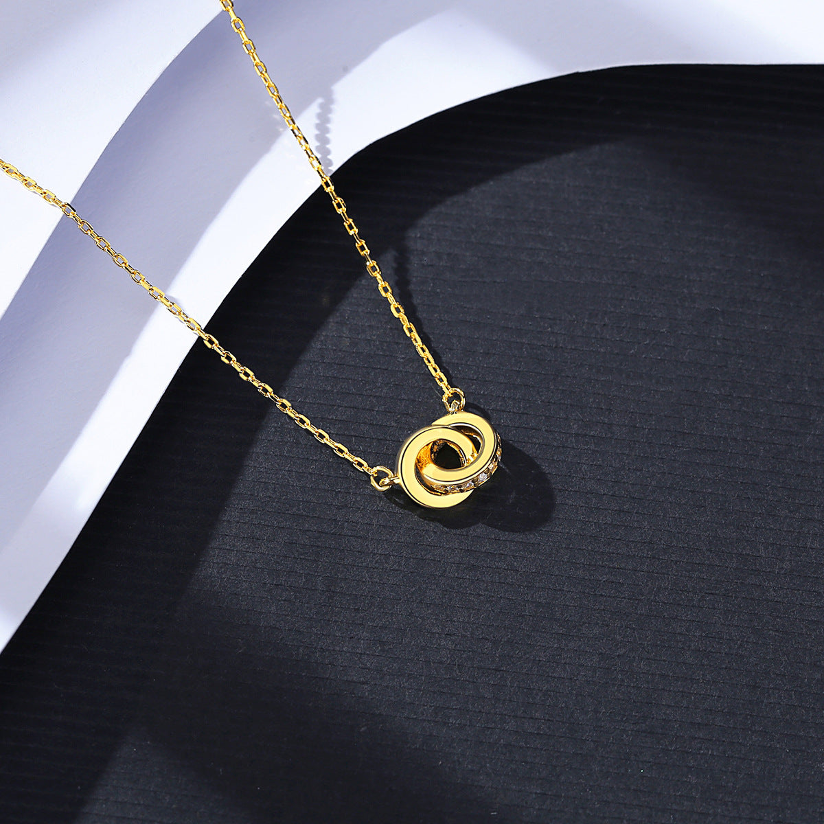 Aetolia 925 Sterling Silver 18K Gold Plated Double Circle Ring Pendant Necklace SN0067