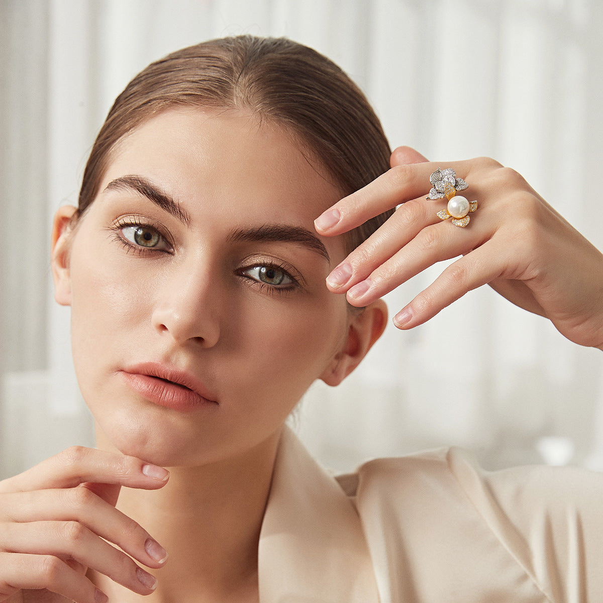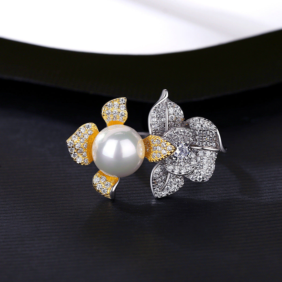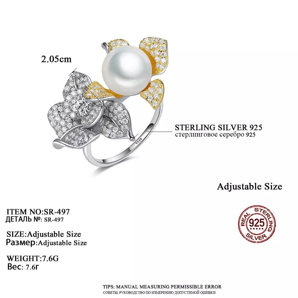 Aetolia 925 Sterling Silver Natural Freshwater Pearl Rings Double Gold Plated Flower Adjustable Open Ring SR-497