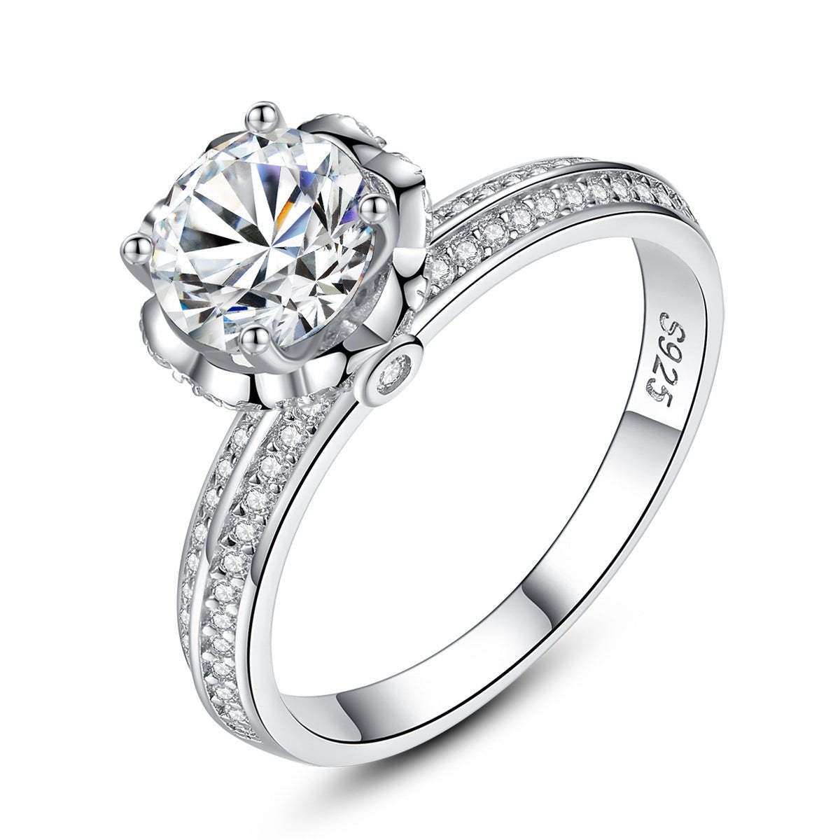 Aetolia 925 Sterling Silver 18K Gold Plated Double Row CZ Diamond Engagement Wedding Ring SR0064