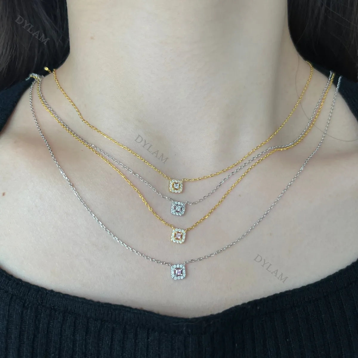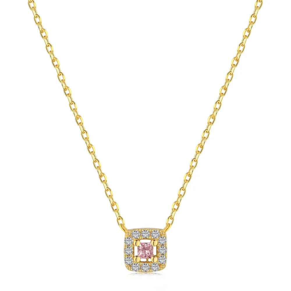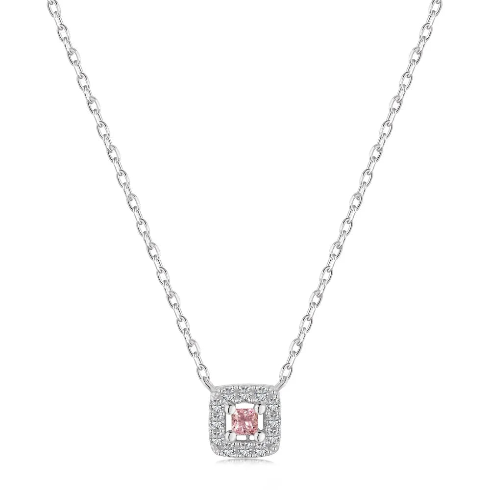 Aetolia 2022 Brand New Pink Color Cubic Zircon Dainty Necklaces Sterling Silver 925 Stone Pendant Necklace for Women