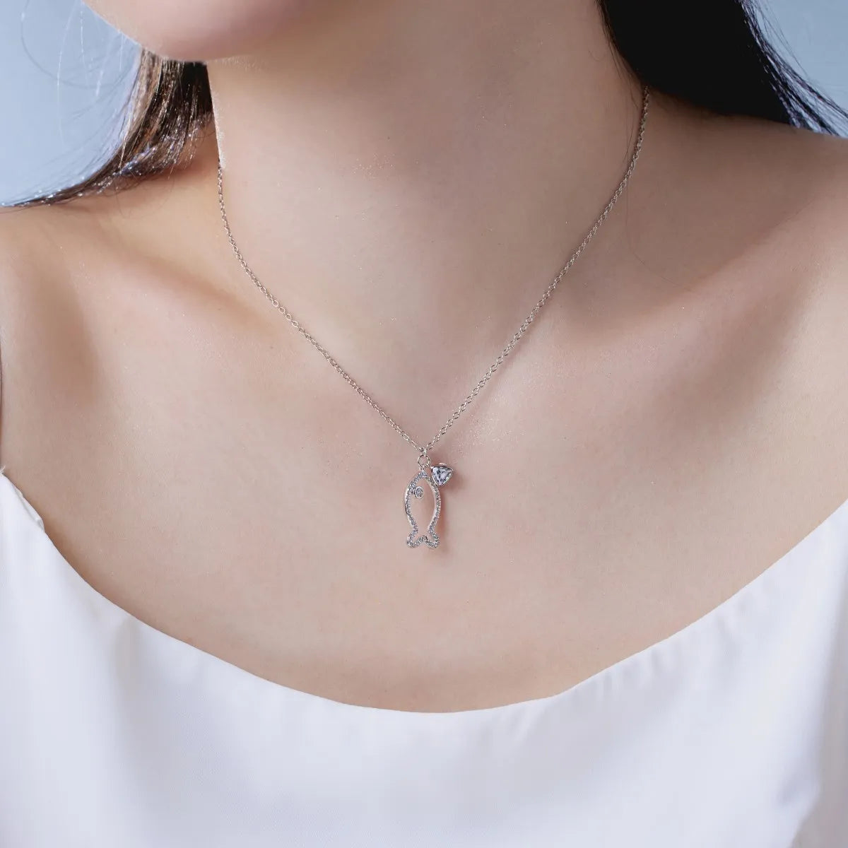 Aetolia 2024 Trendy 18K Gold Hollow Fish Necklace S925 Sterling Silver Cubic Zirconia Pendant Necklaces Jewelry For Women Gifts