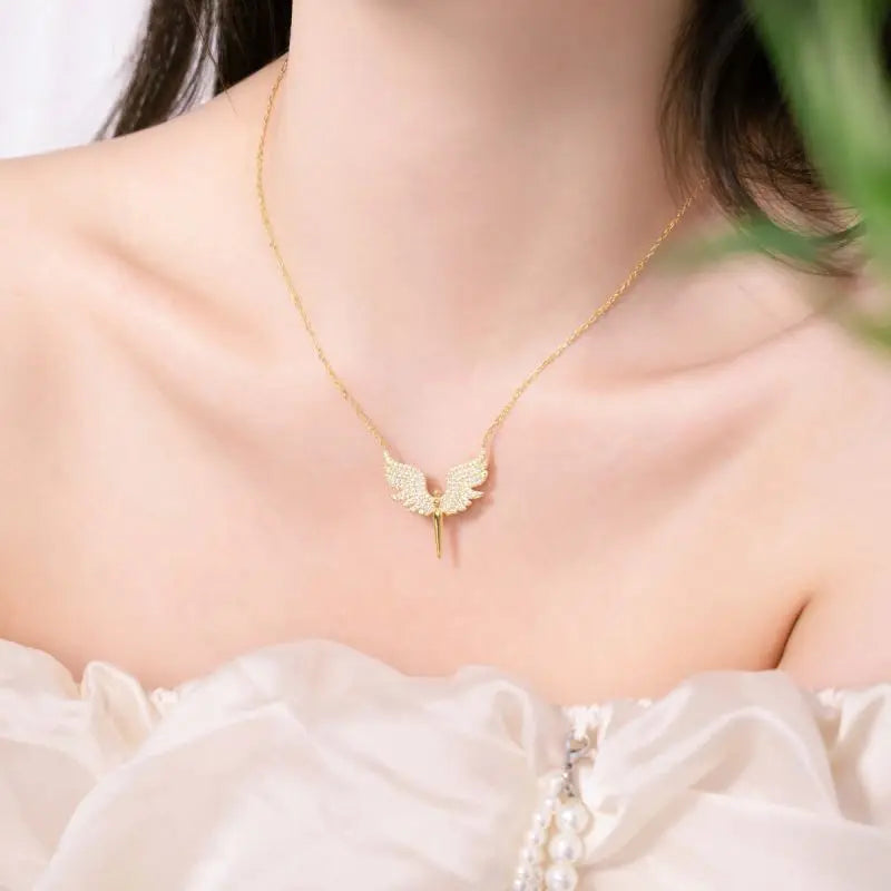 Aetolia 2024 Wholesale New Design S925 Cz Zircon Angel Wings Pendant Necklace 18K Gold Plated Chain Necklaces For Ladies Women