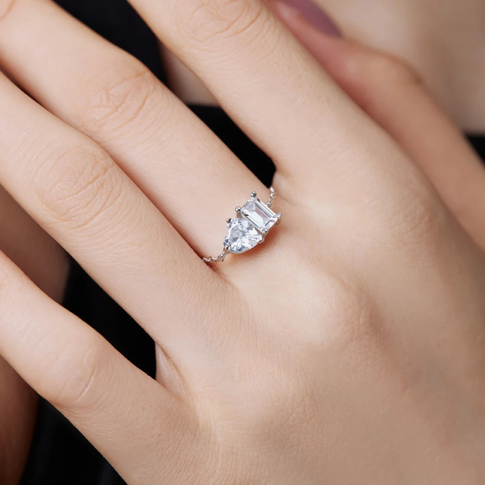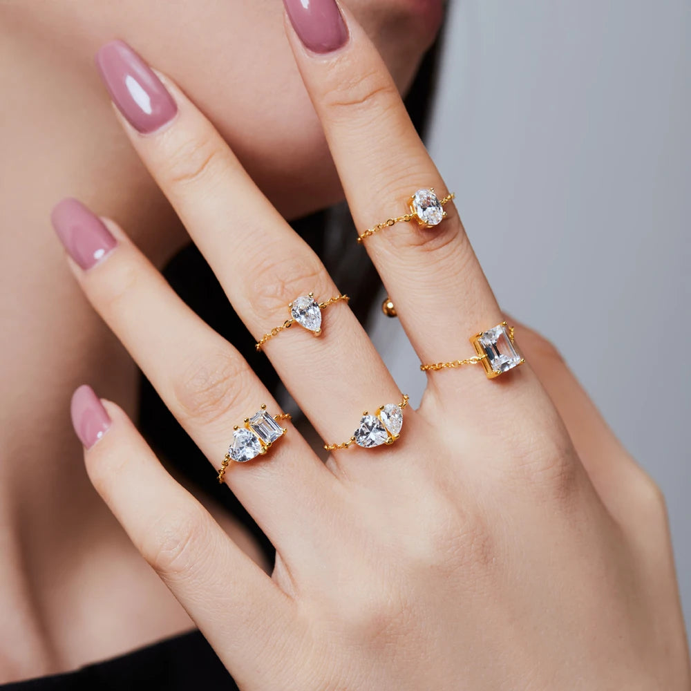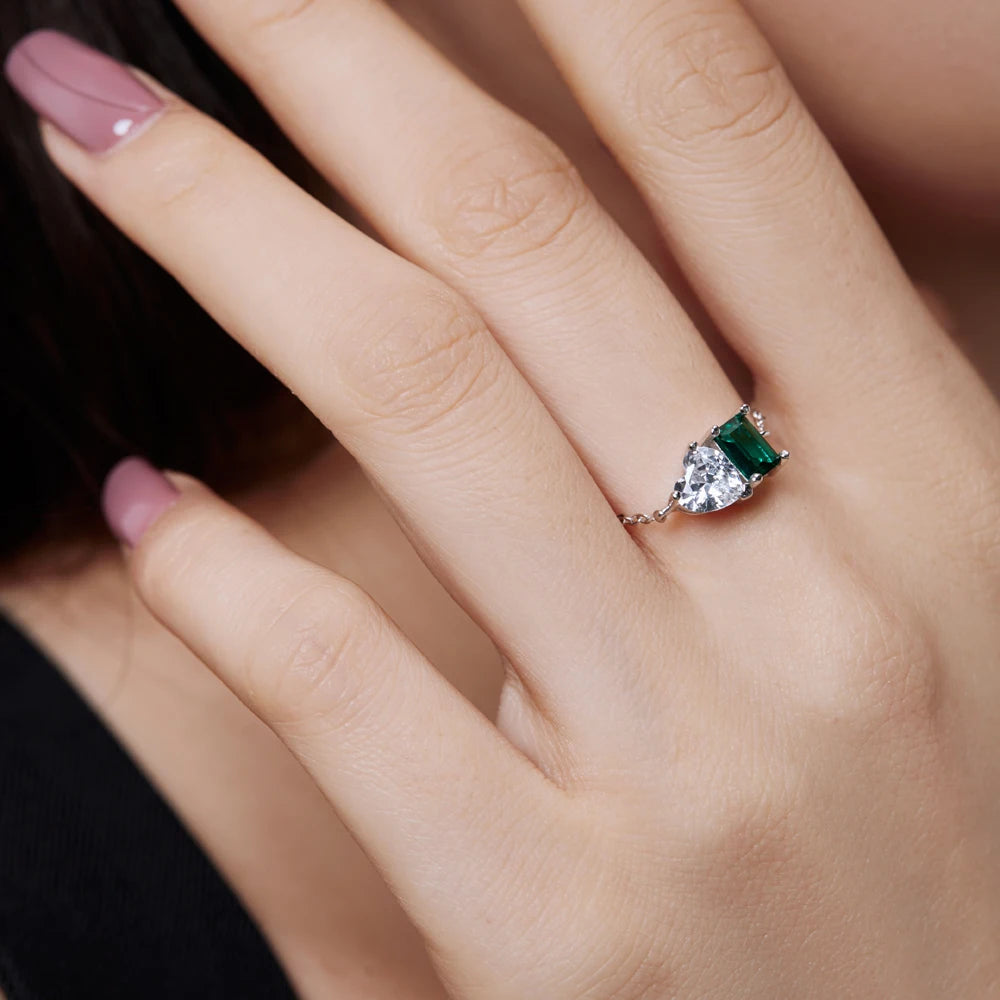 Aetolia 925 Silver Square Bead Heart Shape Zircon Green Emerald Ring Adjustable Chain 18K Gold Plated Link Chain Rings For Women