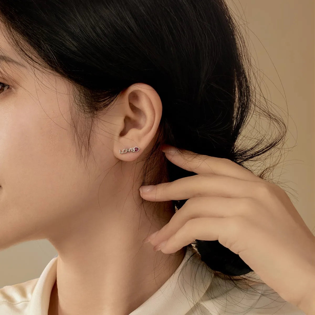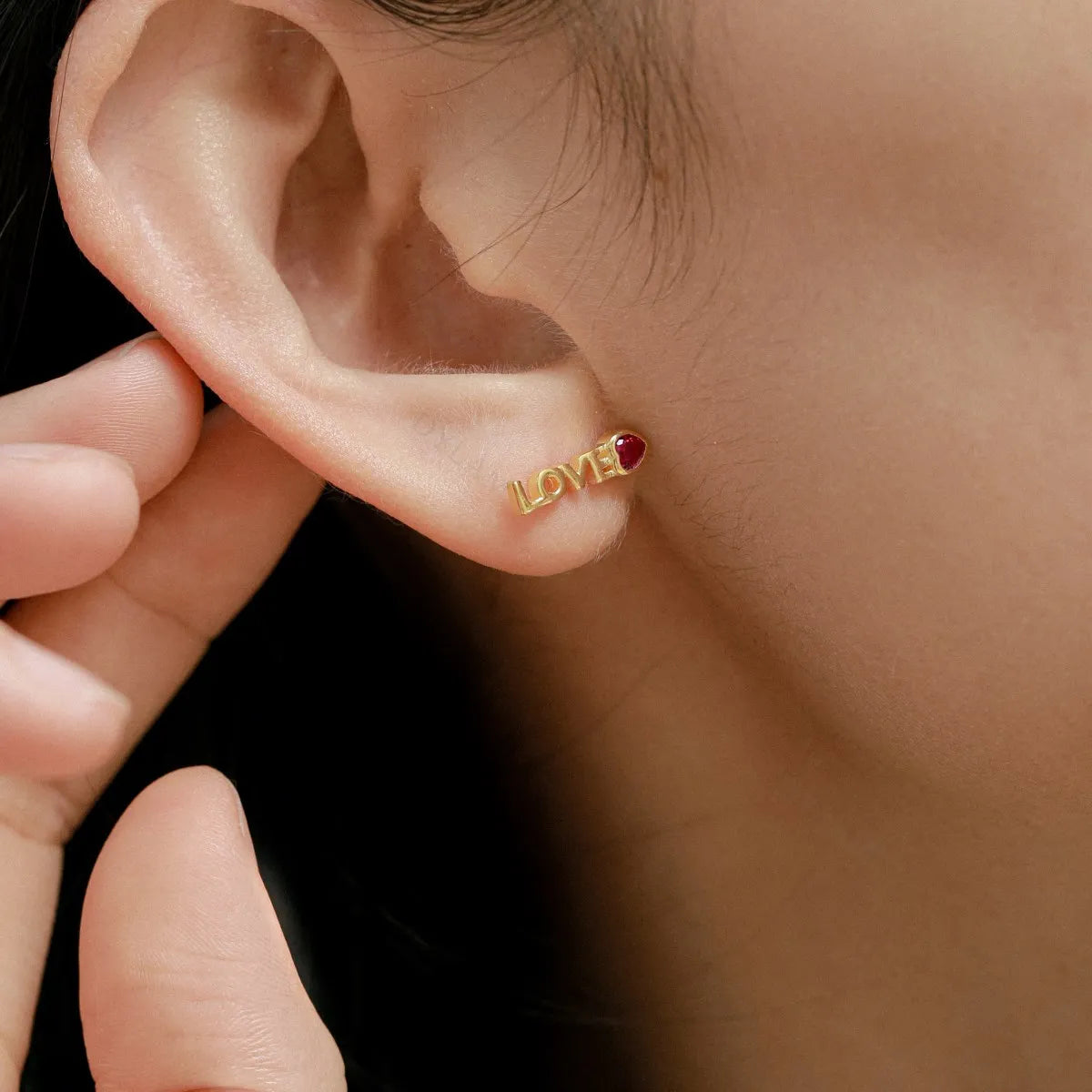 Aetolia Anti Tarnish Super Hot Sale Romantic MAMA Series "LOVE" Sign With Red Heart Shape Zircon Silver Earrings for Mother's Day