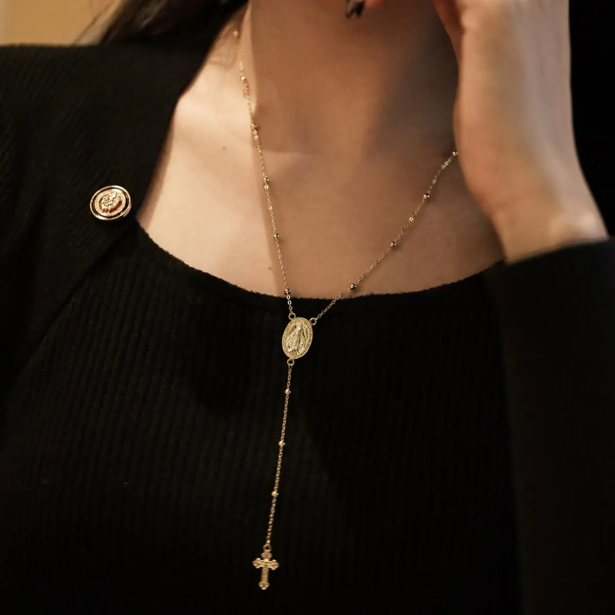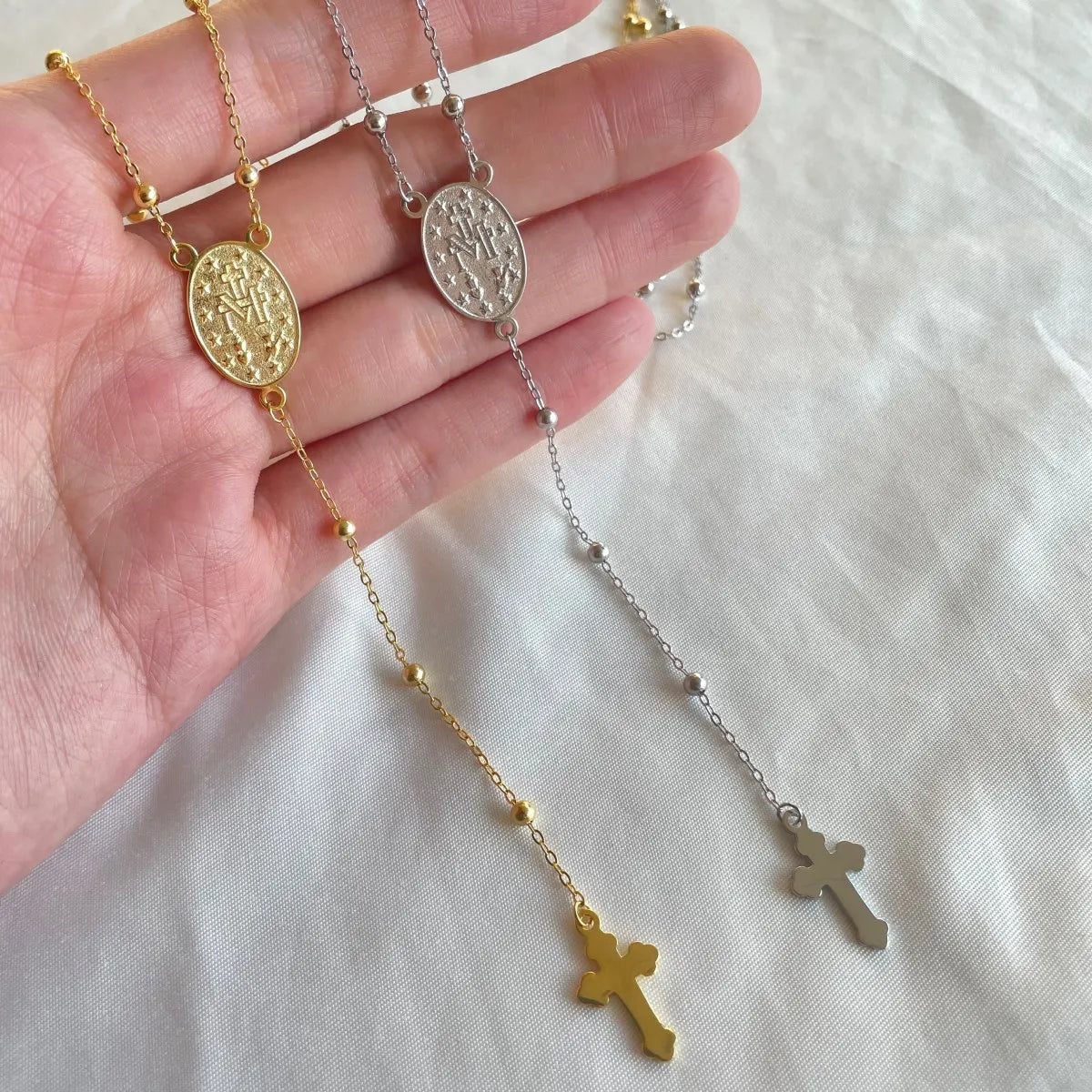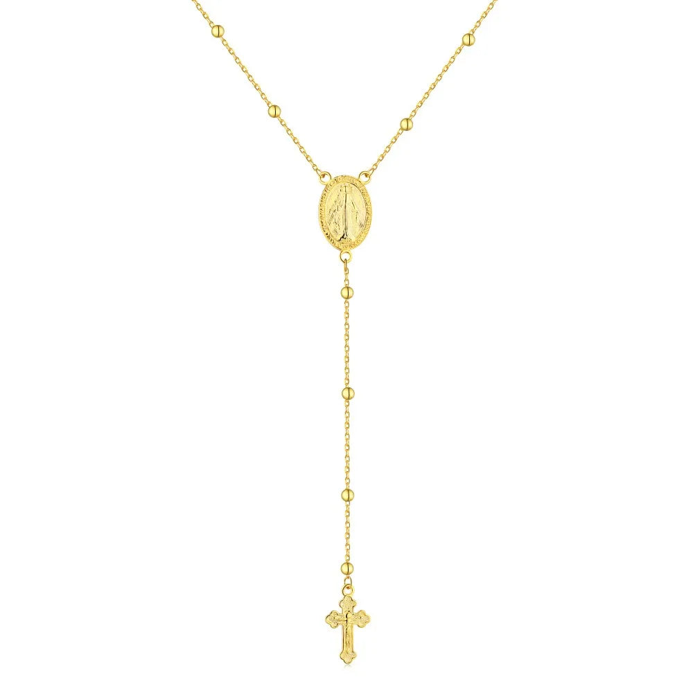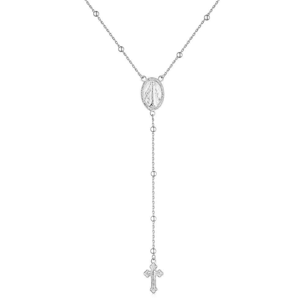 Aetolia Boho S925 Silver Long Y-Necklace Jewelry Religious Mini Catholic Virgin Mary Cross Pendant Layered Necklace For Women
