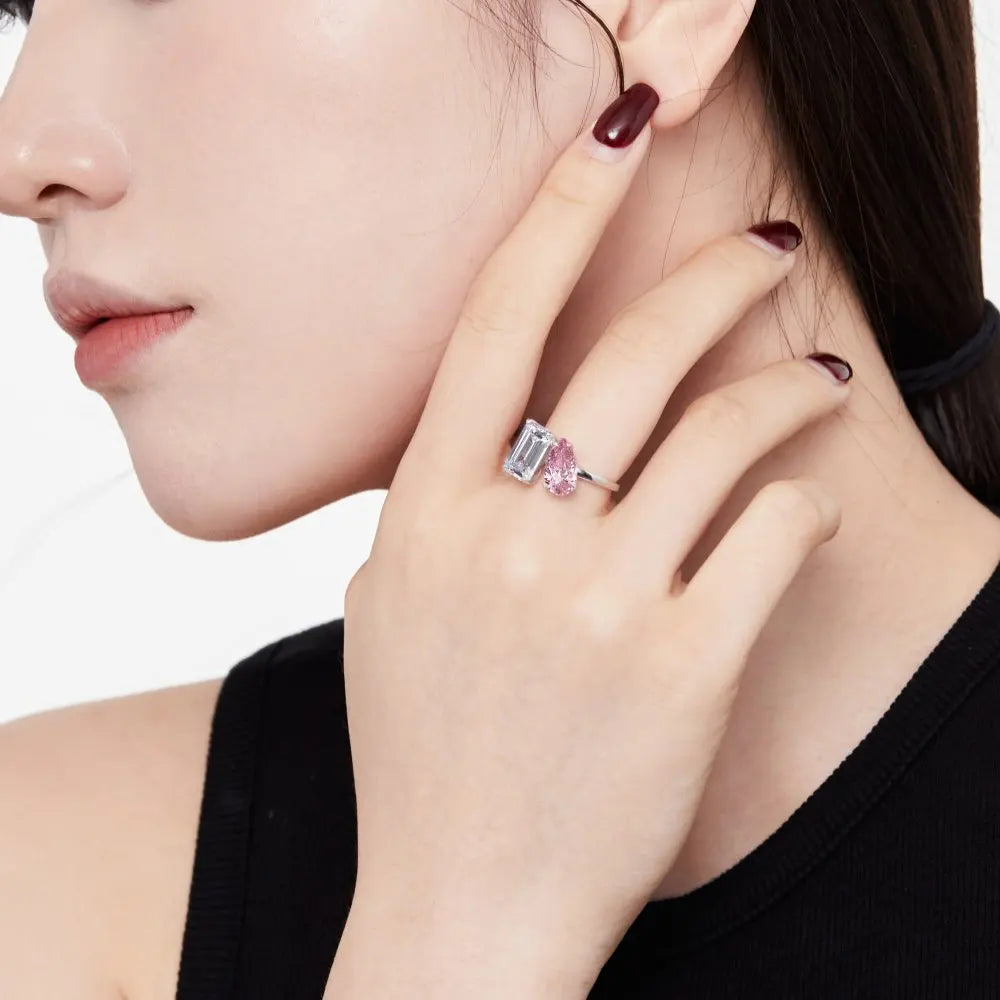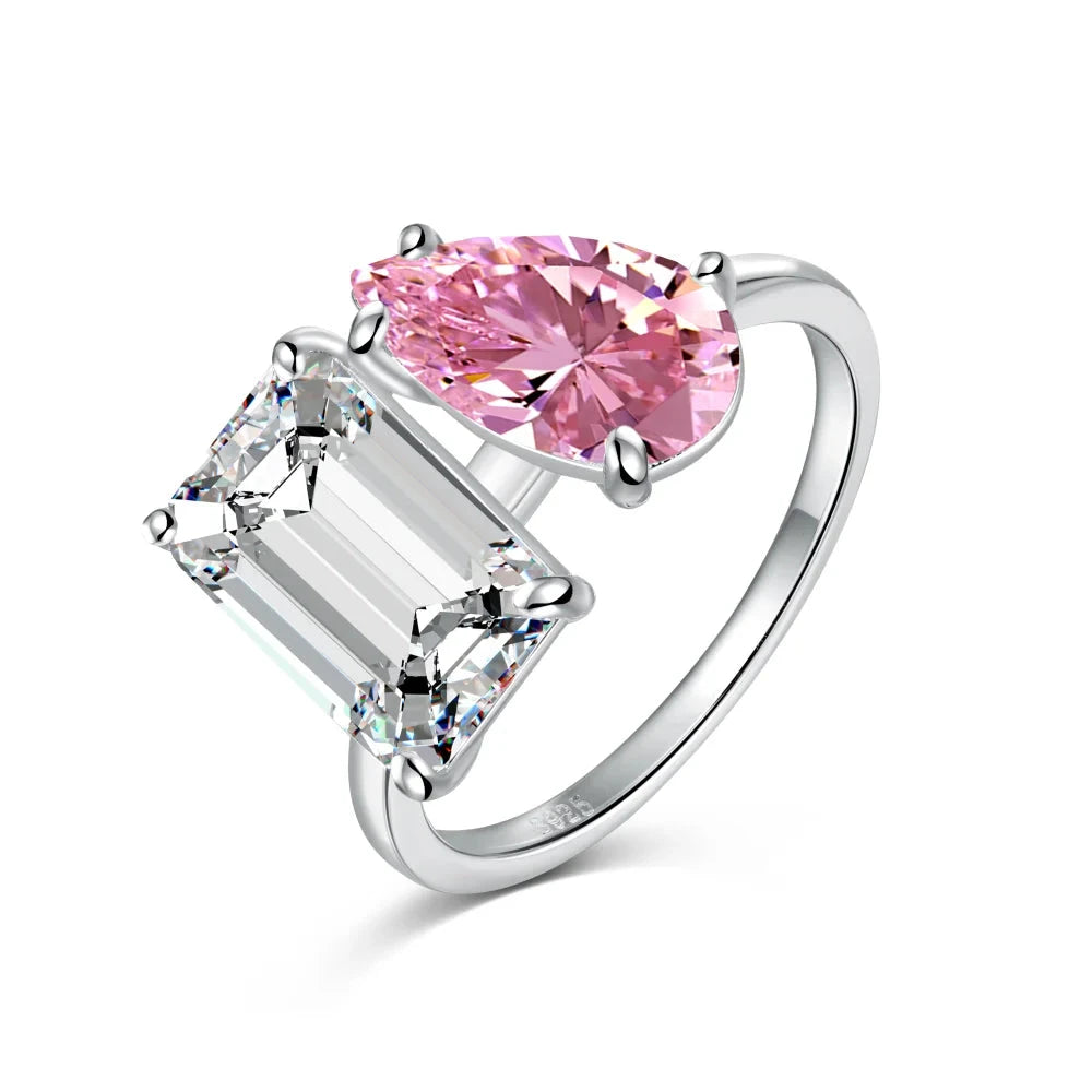 Aetolia Classic Design 925 Silver Eternity Band Engagement Wedding Ring Diamond Pink Pear Shape Cubic Zirconia Rings Jewelry Women