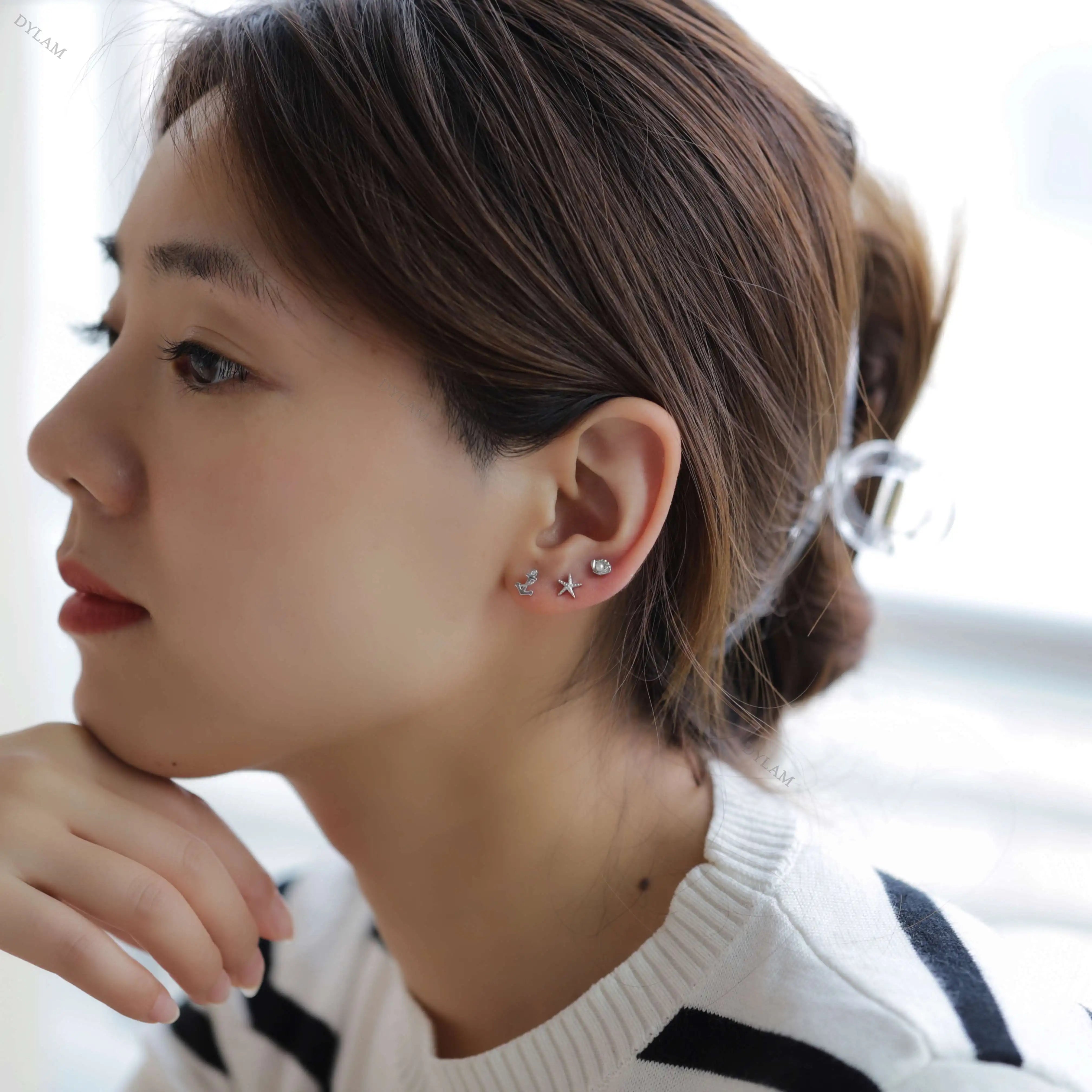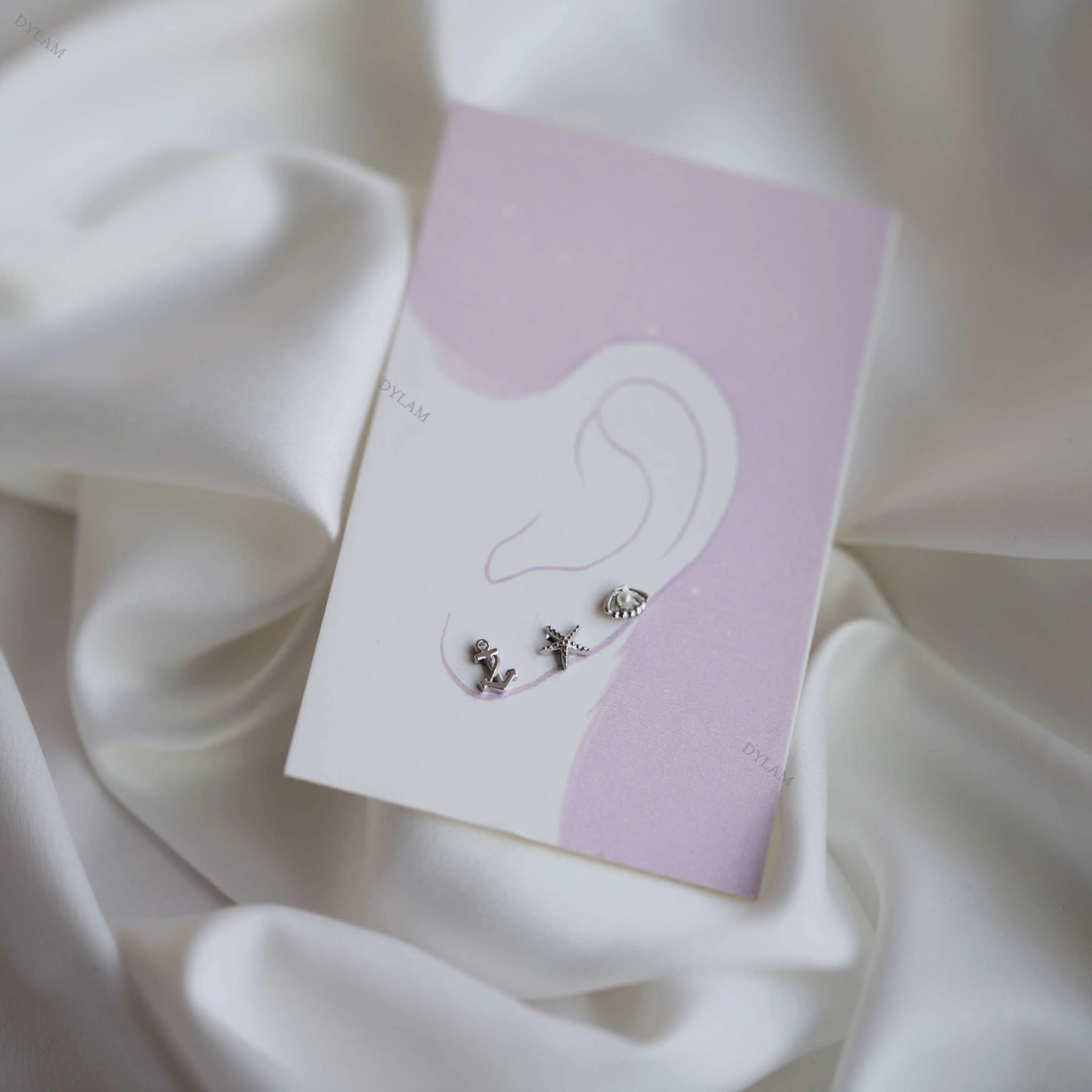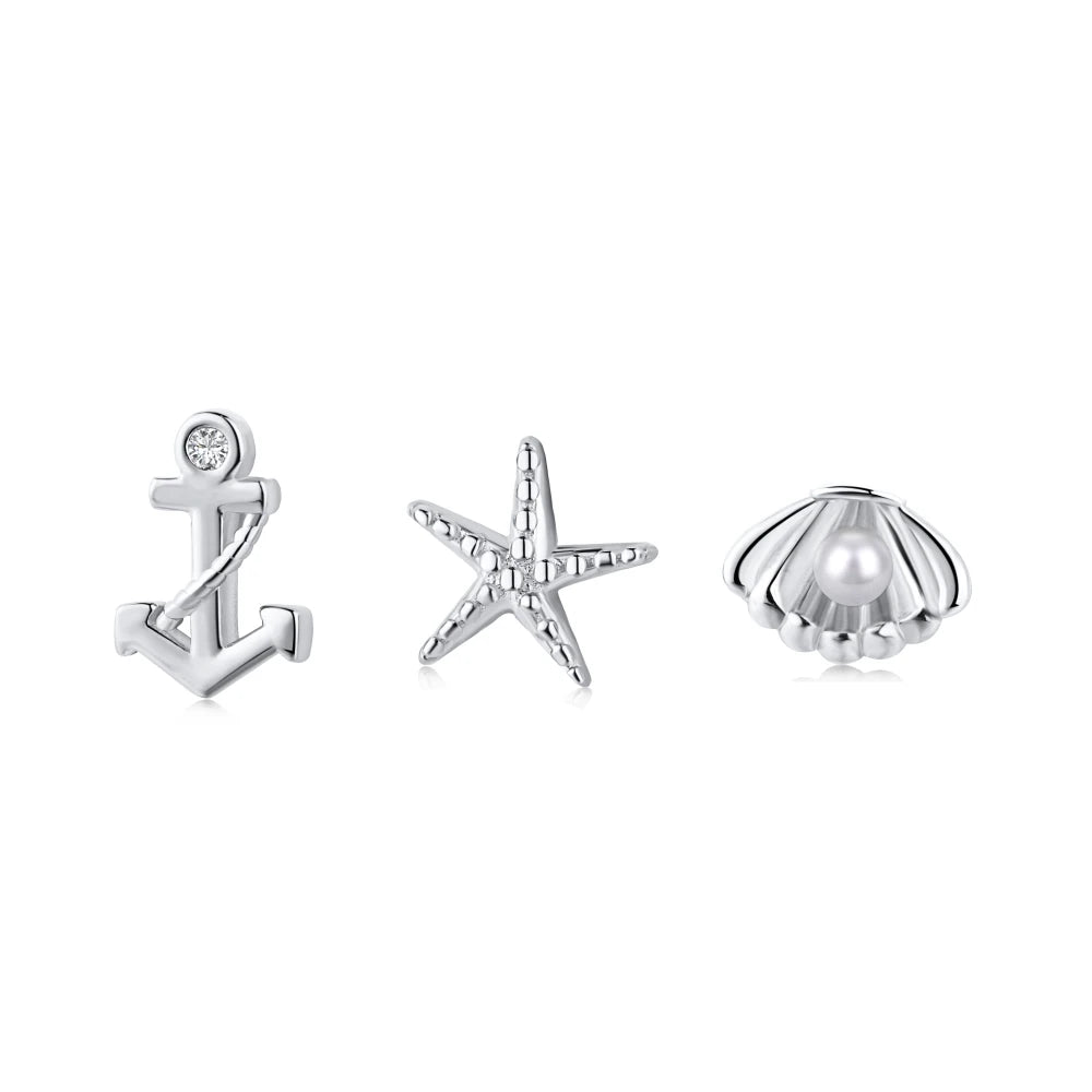 Aetolia New Arrival Cz Silver 18K Gold Plated Earrings Sets S925 Sterling Silver Small Simple Ocean Series Shell Starfish For Girl