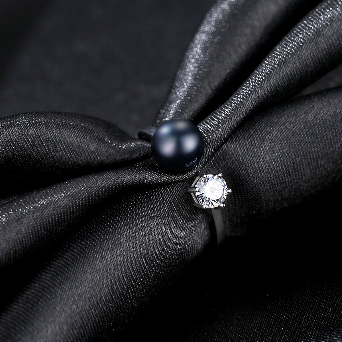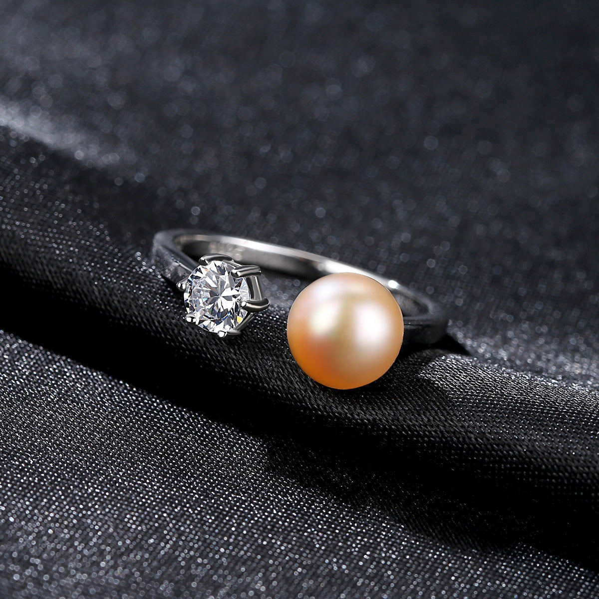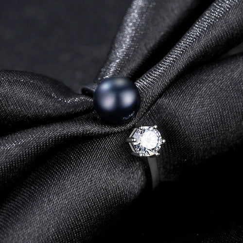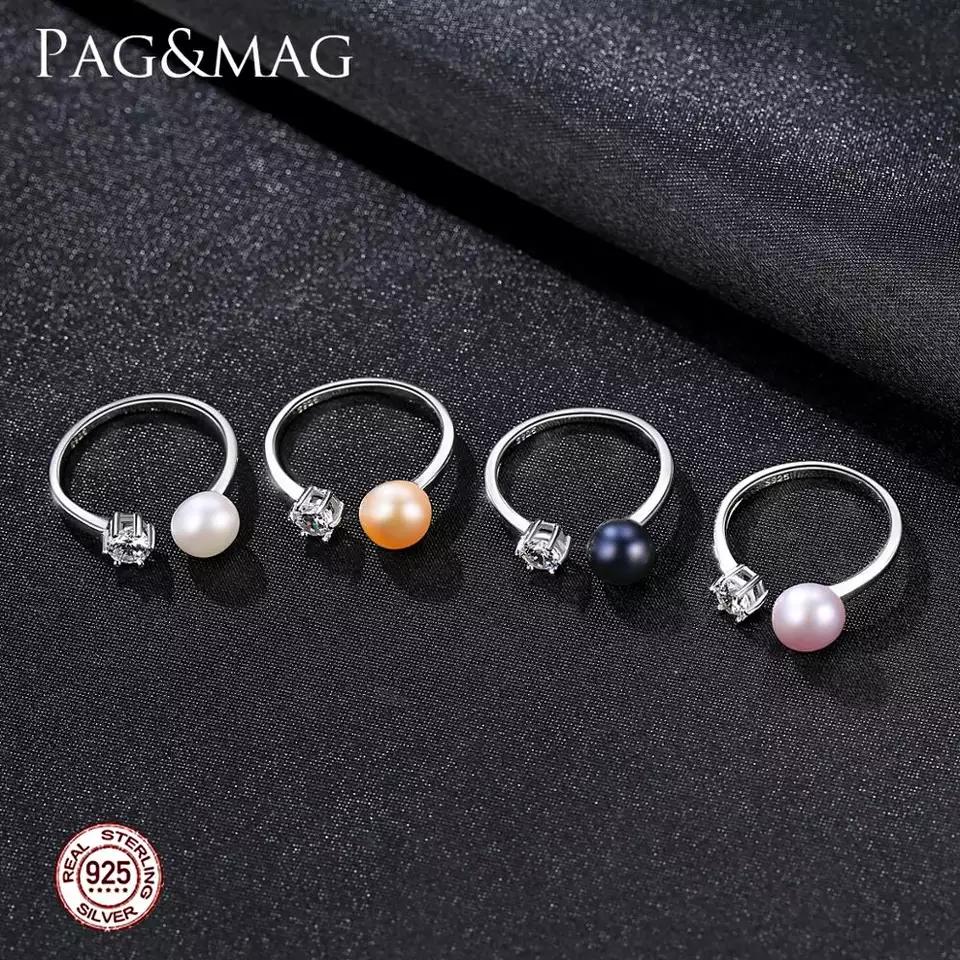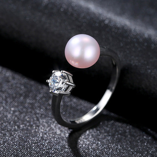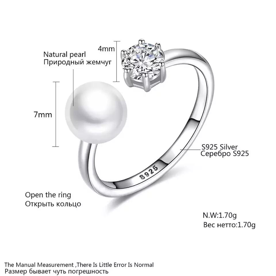 Aetolia 925 Sterling Silver Natural Freshwater Pearl Rings Round CZ Diamond Solitaire Adjustable Open Ring FR0065