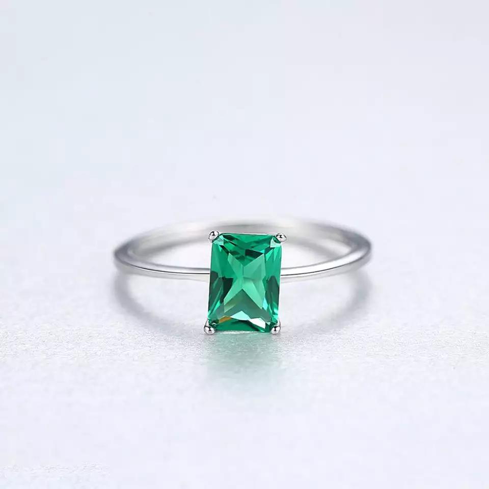 Aetolia 925 Sterling Silver 18K Gold Plated Ring 4 Prong Emerald Rectangle Gemstone Engagement Wedding Ring SR0169