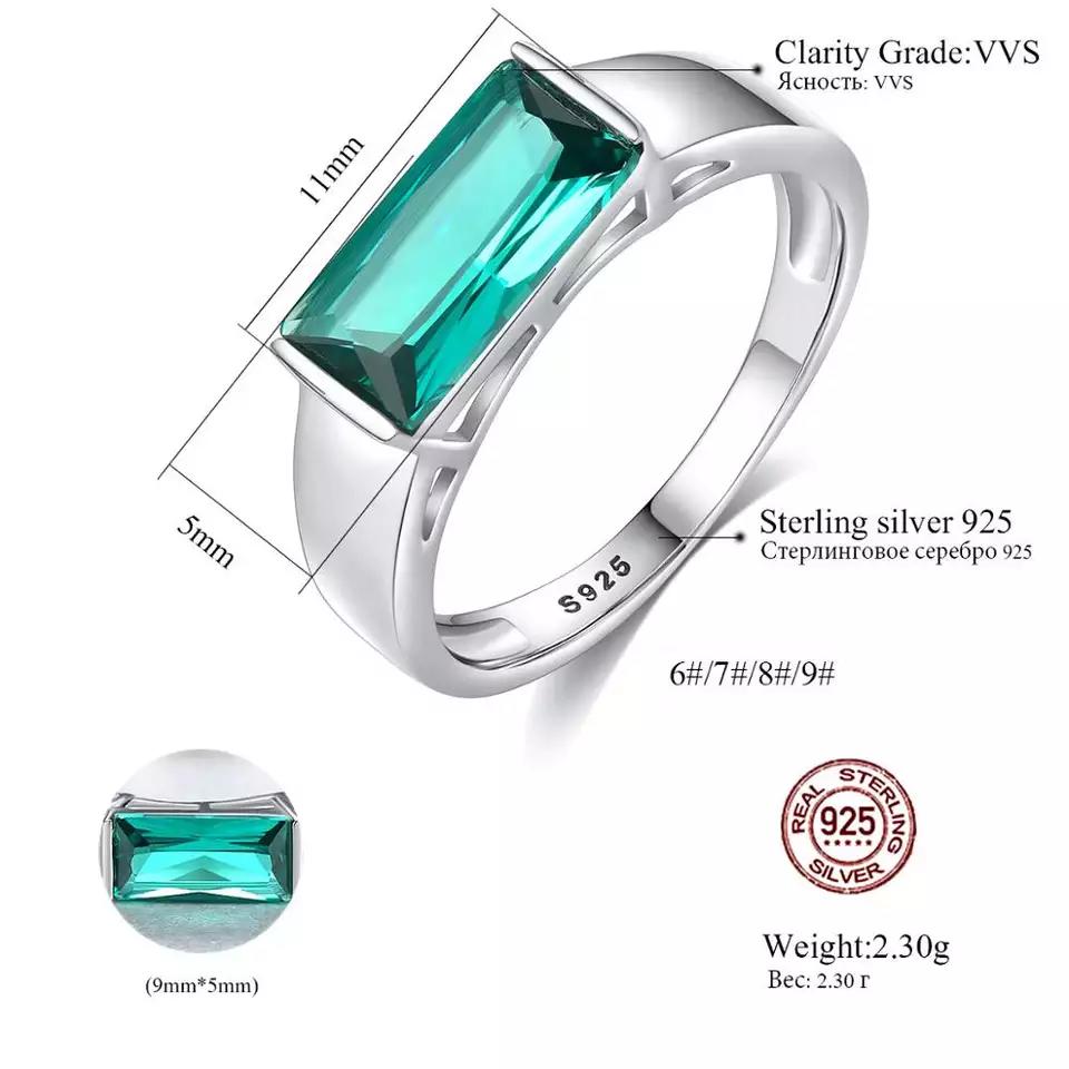 Aetolia 925 Sterling Silver 18K Gold Plated Ring Emerald Rectangle Gemstone Engagement Wedding Ring SR0152