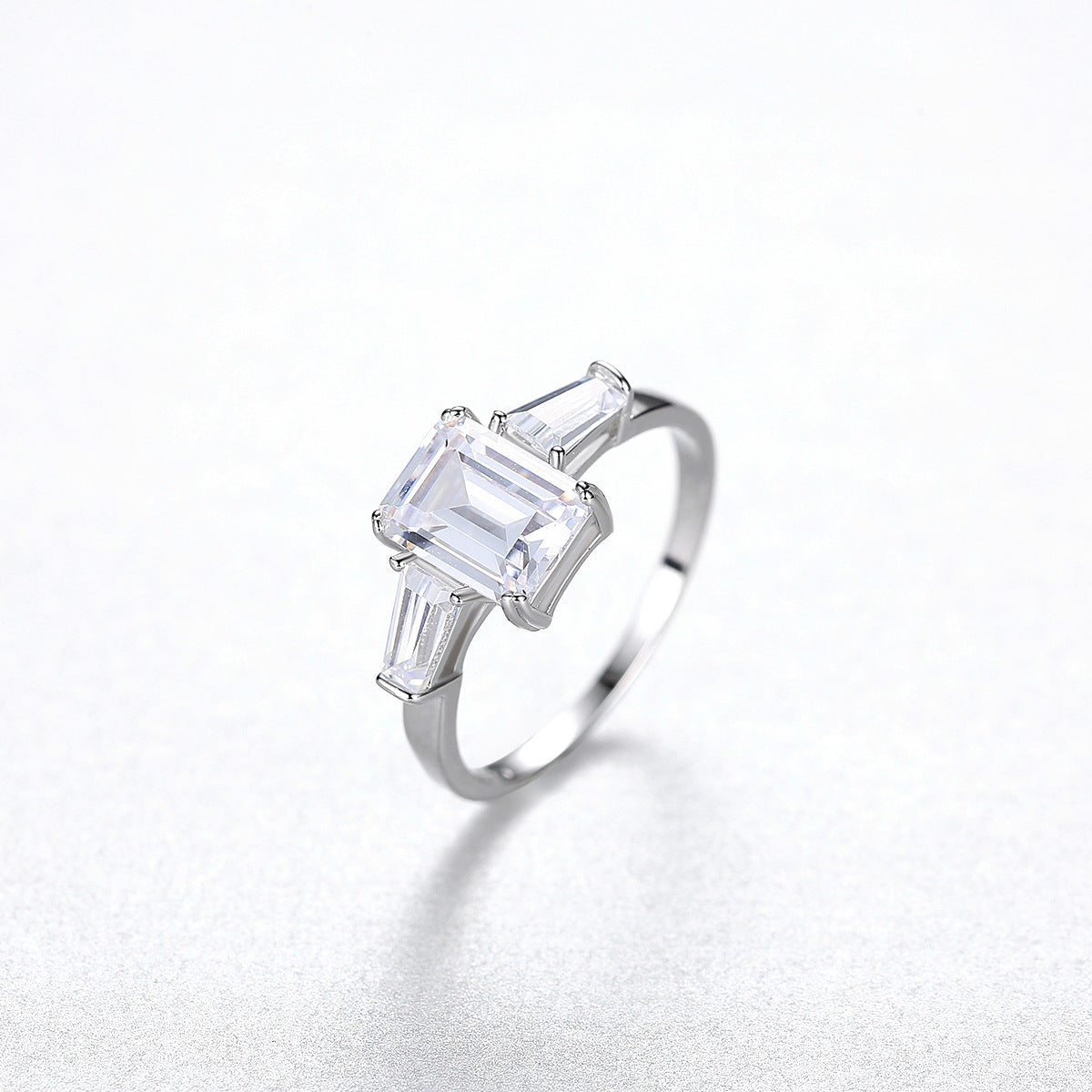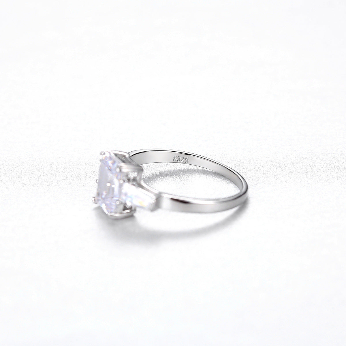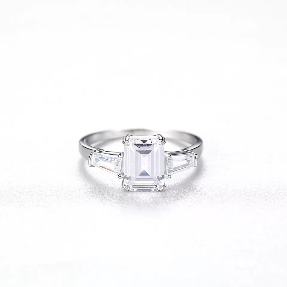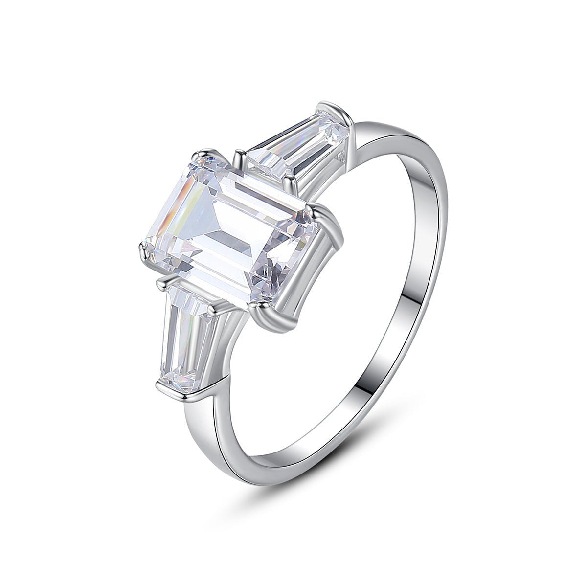 Aetolia 925 Sterling Silver 18K Gold Plated 4 Prong Emerald Cut Engagement Wedding Ring SR20121202
