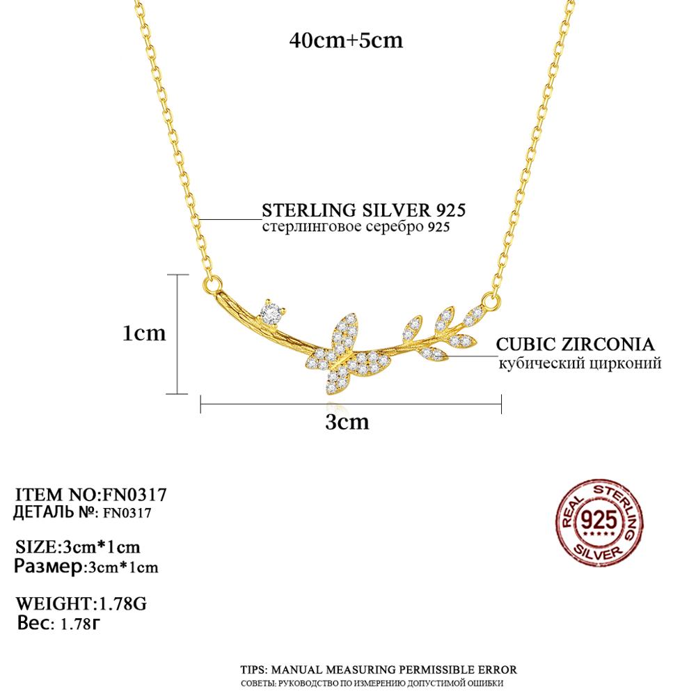 Aetolia 925 Sterling Silver 18K Gold Plated Exquisite Butterfly Pendant Necklace FN0317