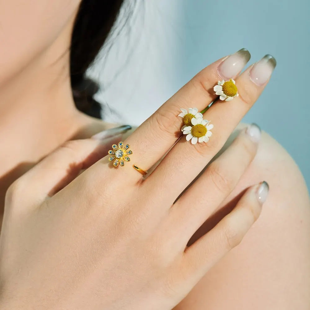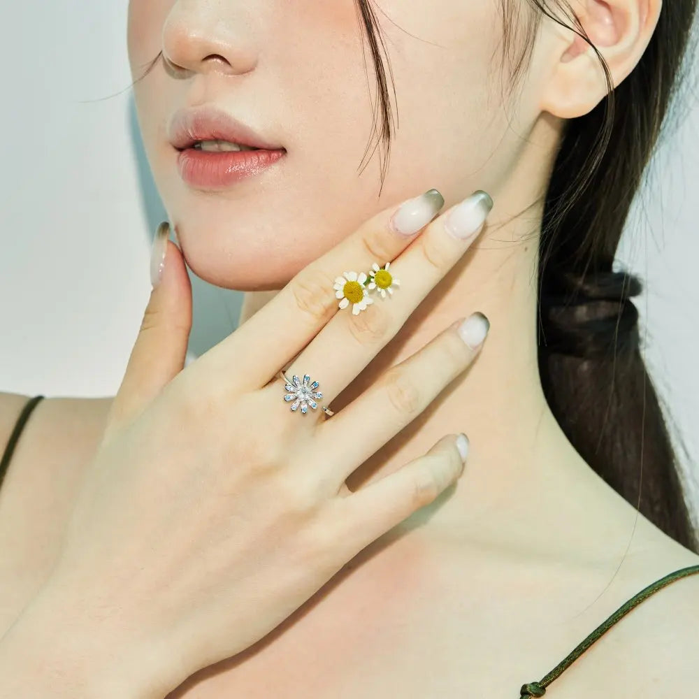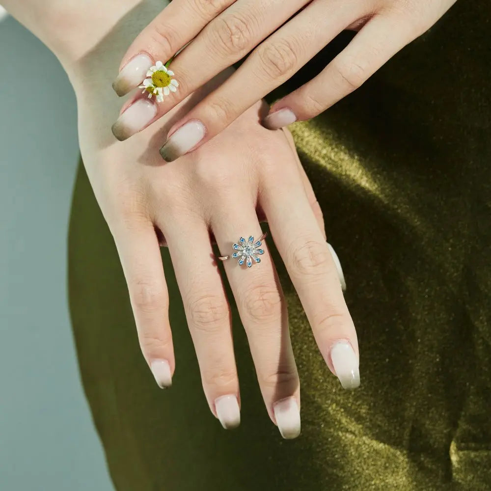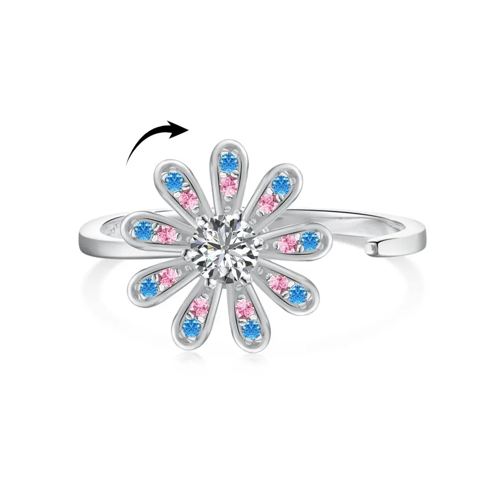 Aetolia Fine Jewelry 925 Sterling Silver 18K Gold Plated Rotatable Flower Cubic Zircon Ring Relief Fidget Anti Anxiety Rings For Women