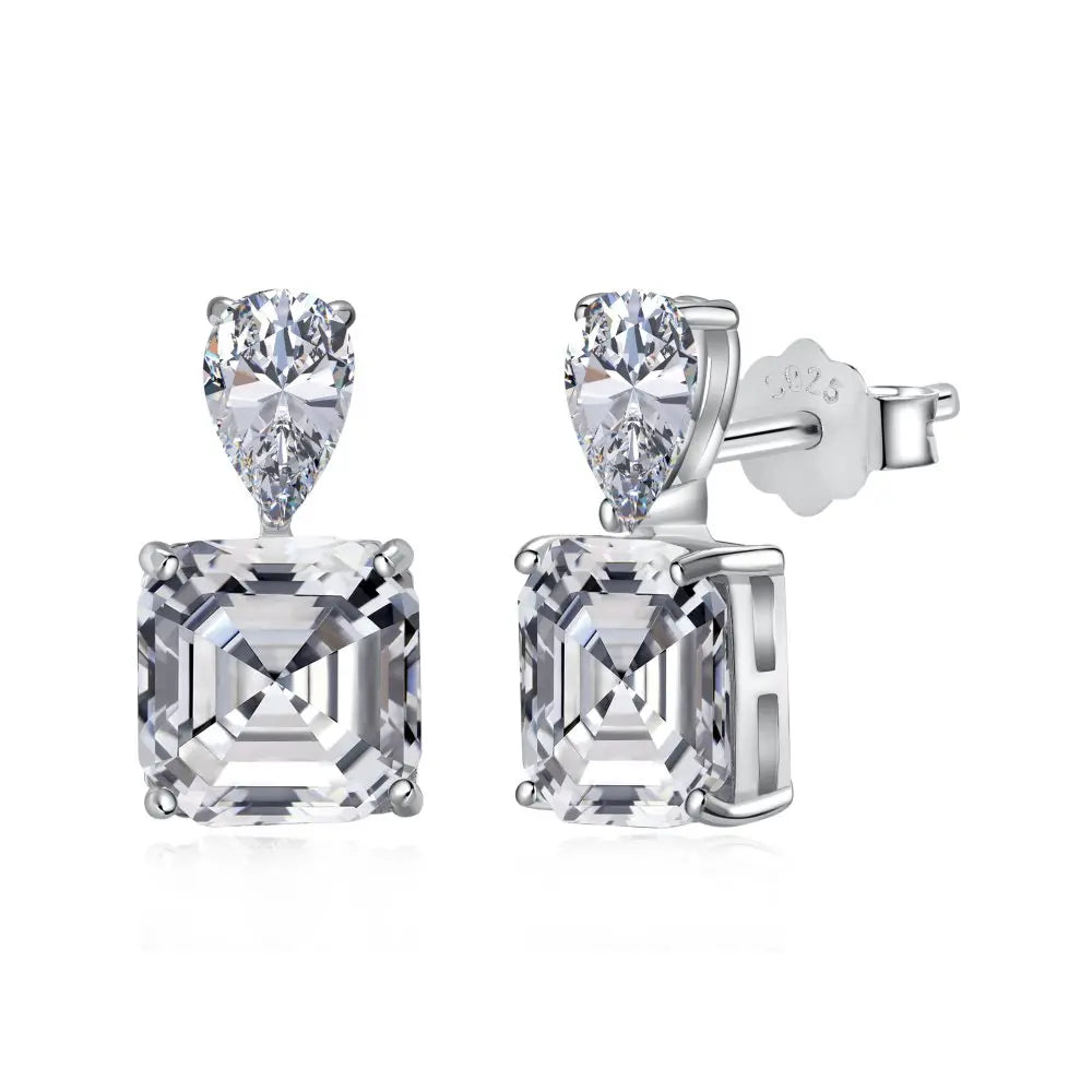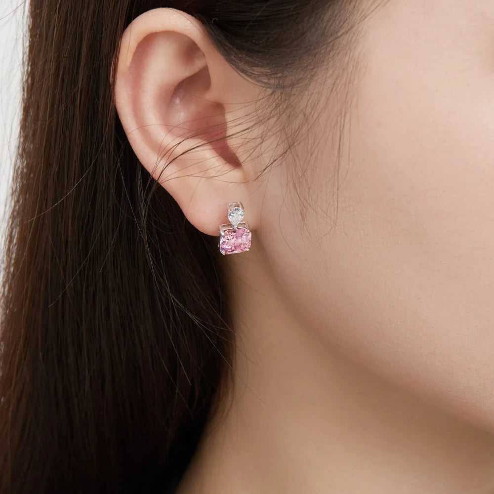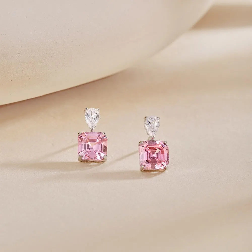 Aetolia Fine Jewelry High Quality 925 Sterling Silver Earring Cz Cubic Zircon Pink Sapphire Diamond Square Stud Earrings For Women Gift
