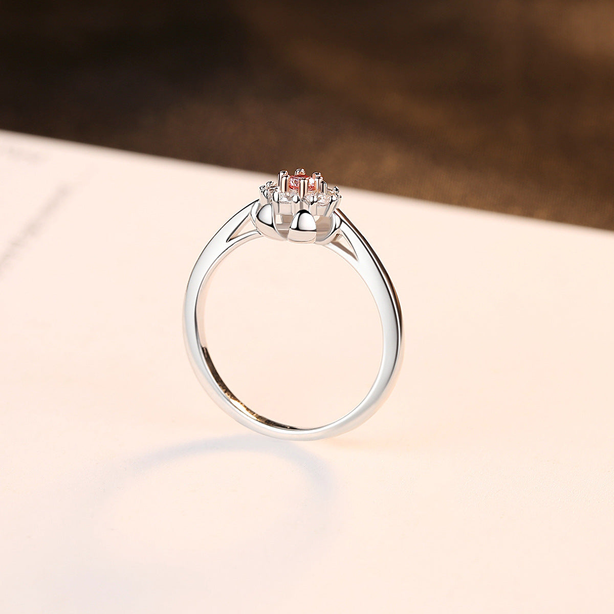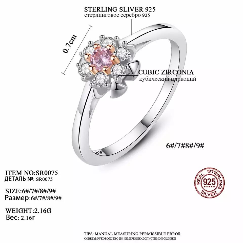 Aetolia 925 Sterling Silver 18K Gold Plated Flower Shaped Pink Solitaire CZ Diamond Ring SR0057