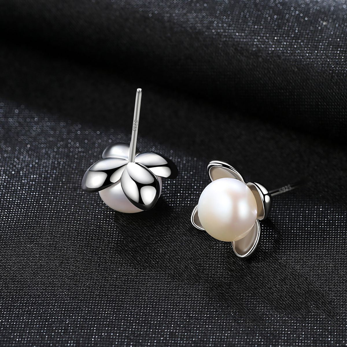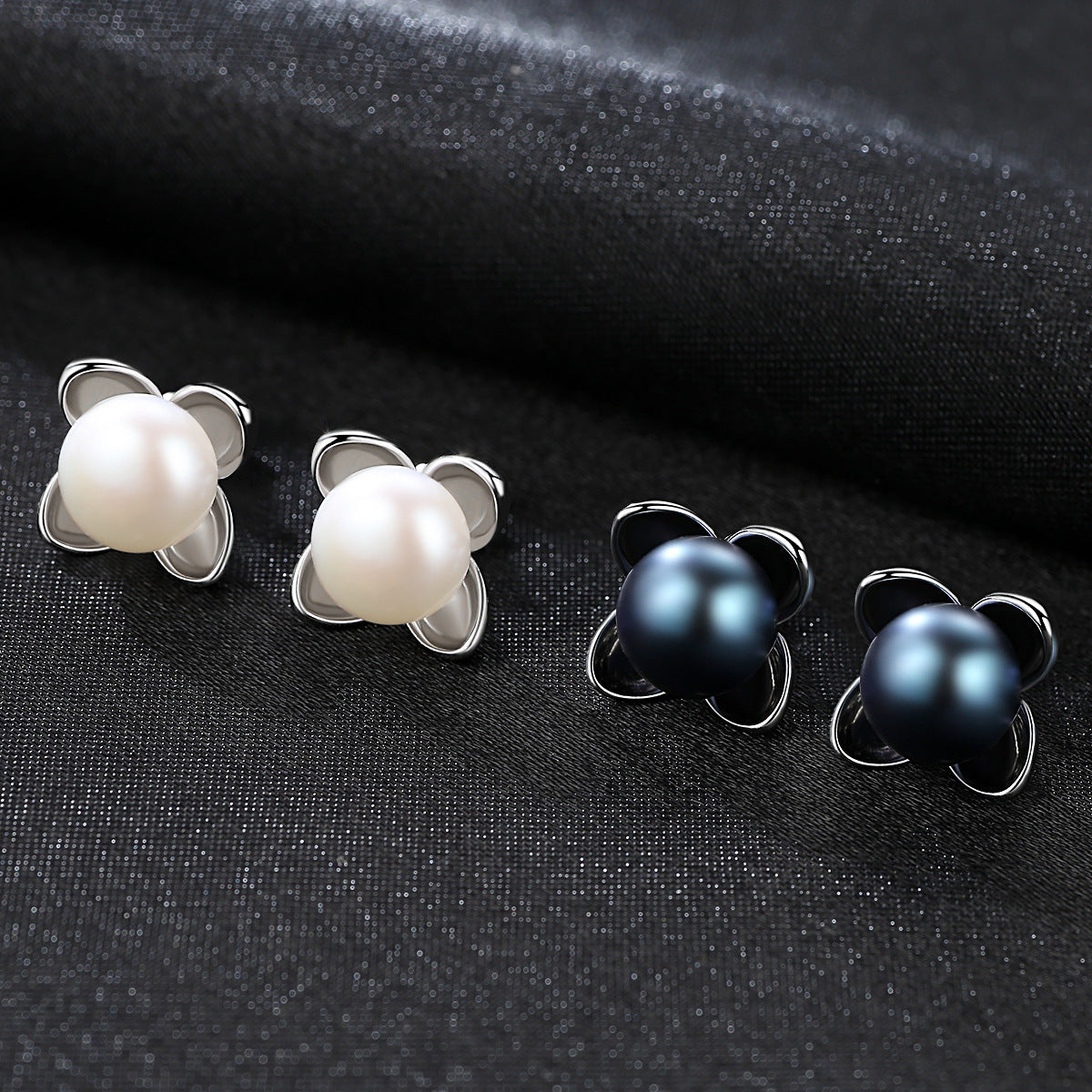 Aetolia 925 Sterling Silver Natural Freshwater Pearl Earrings Four Leaf Clover Black Pearl Stud Earrings FE0111
