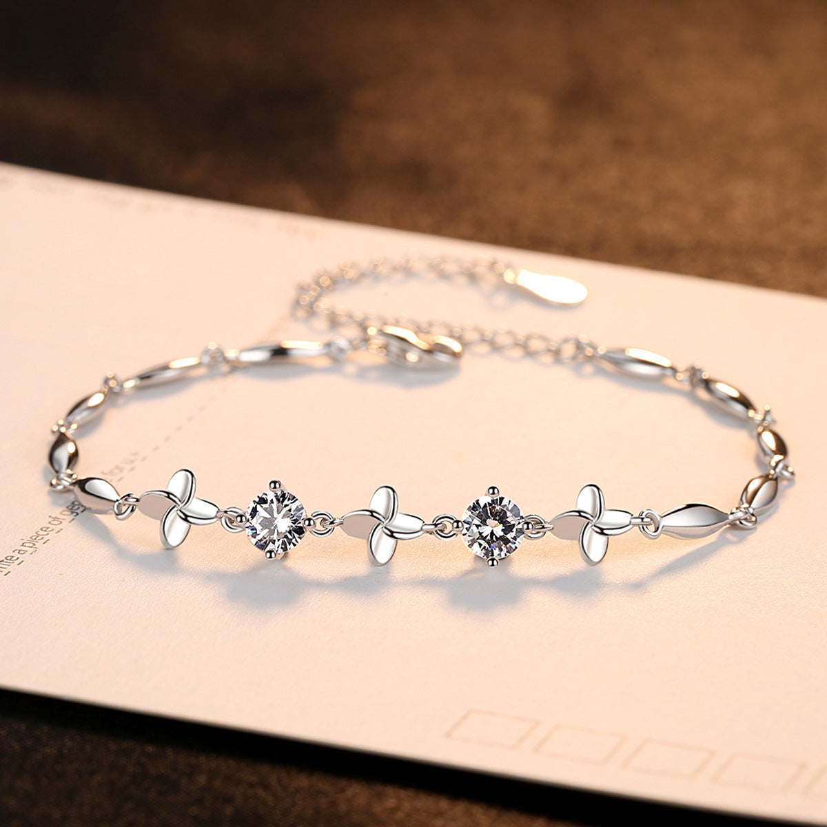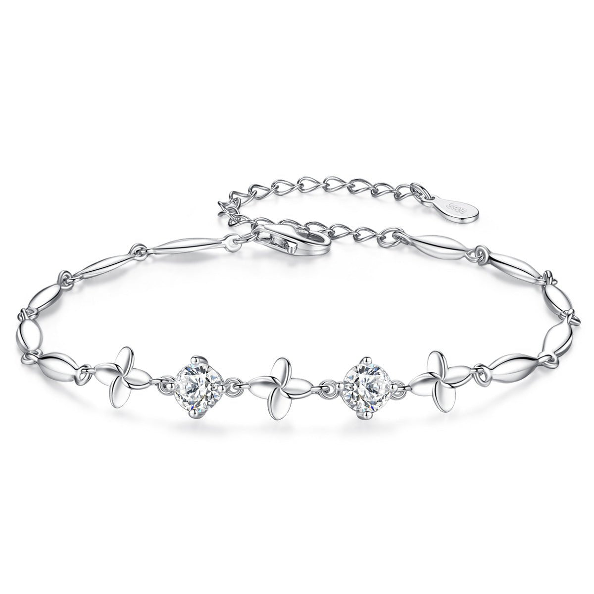 Aetolia 925 Sterling Silver 18K Gold Plated Four Leaf Clover Chain Bracelet SB0054