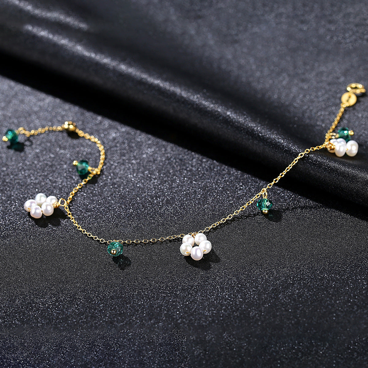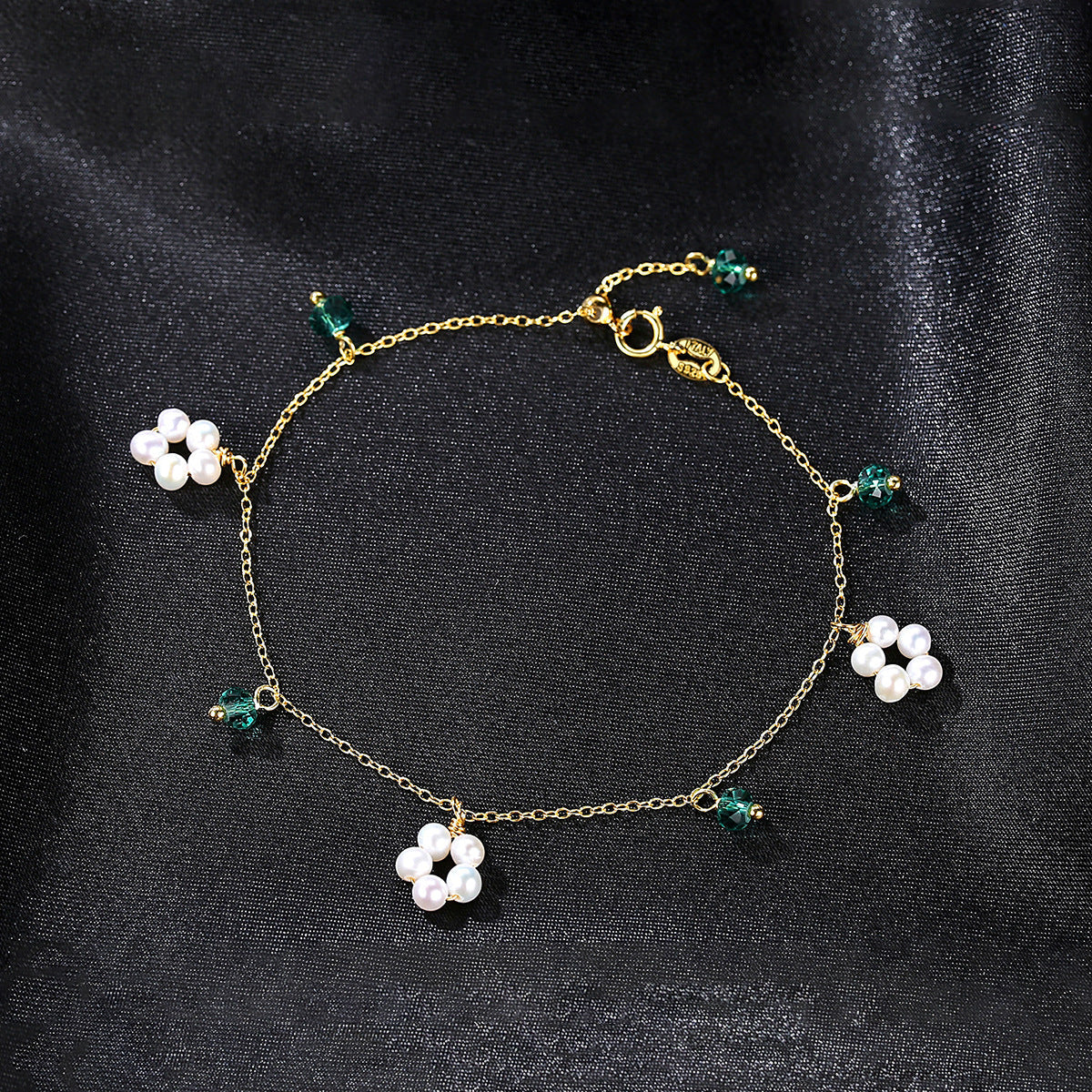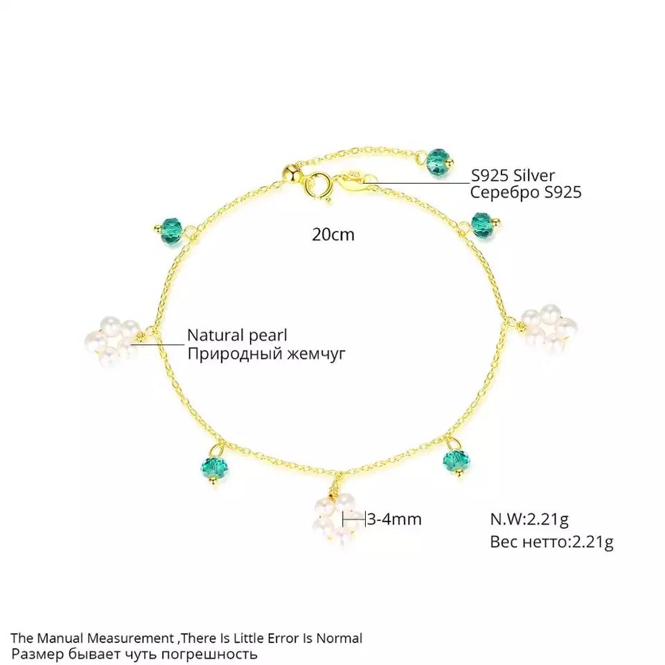 Aetolia 925 Sterling Silver Natural Freshwater Pearl Bracelet Bead Flower Chain Bracelet SB0096