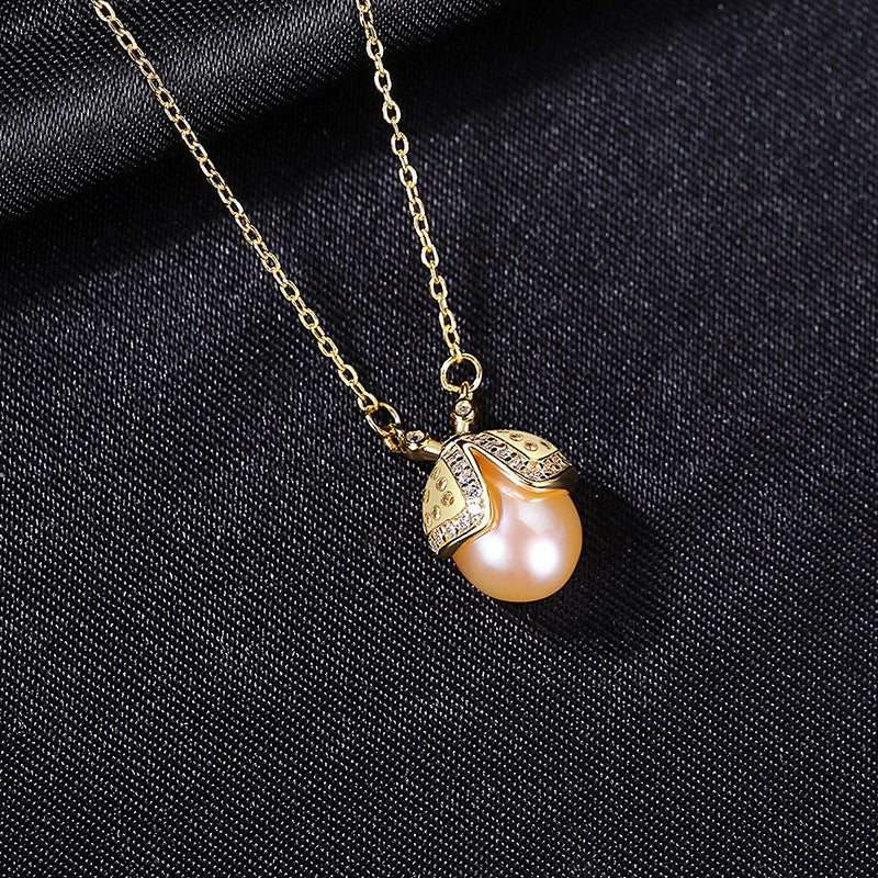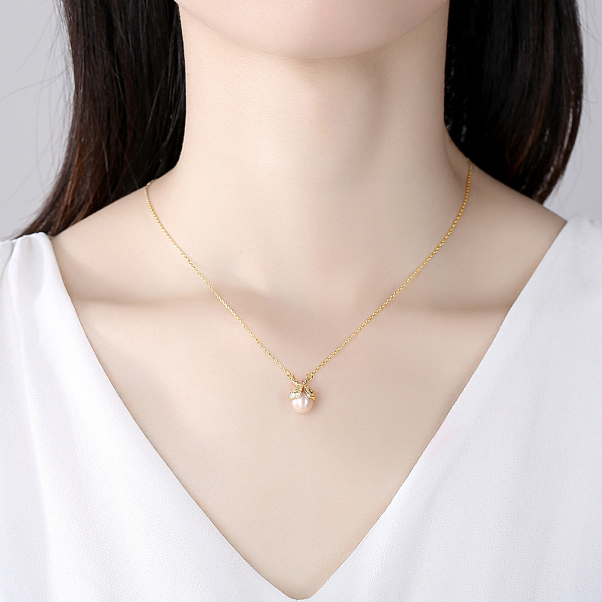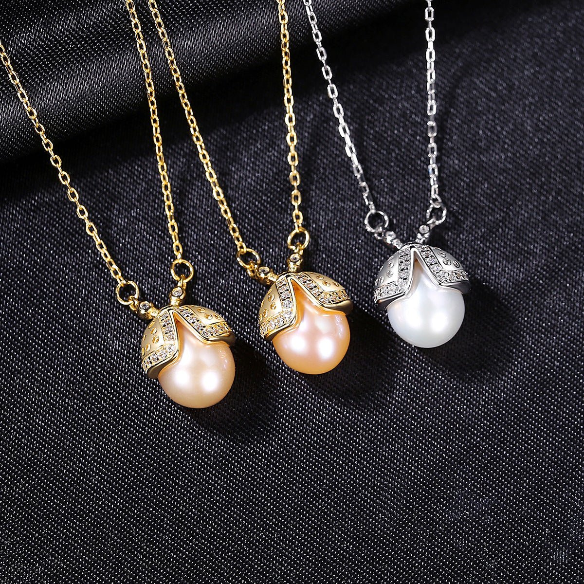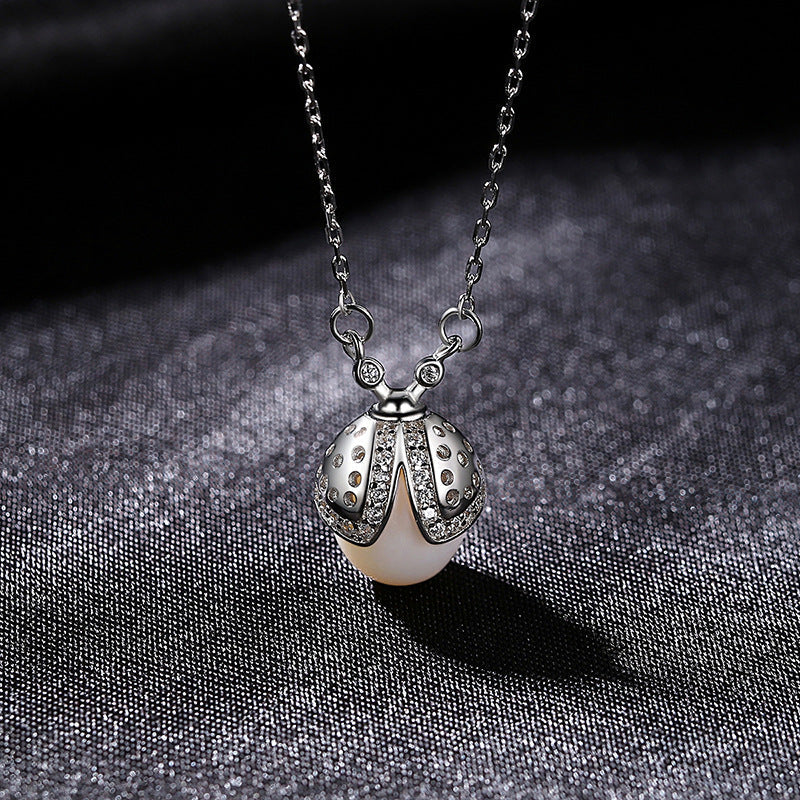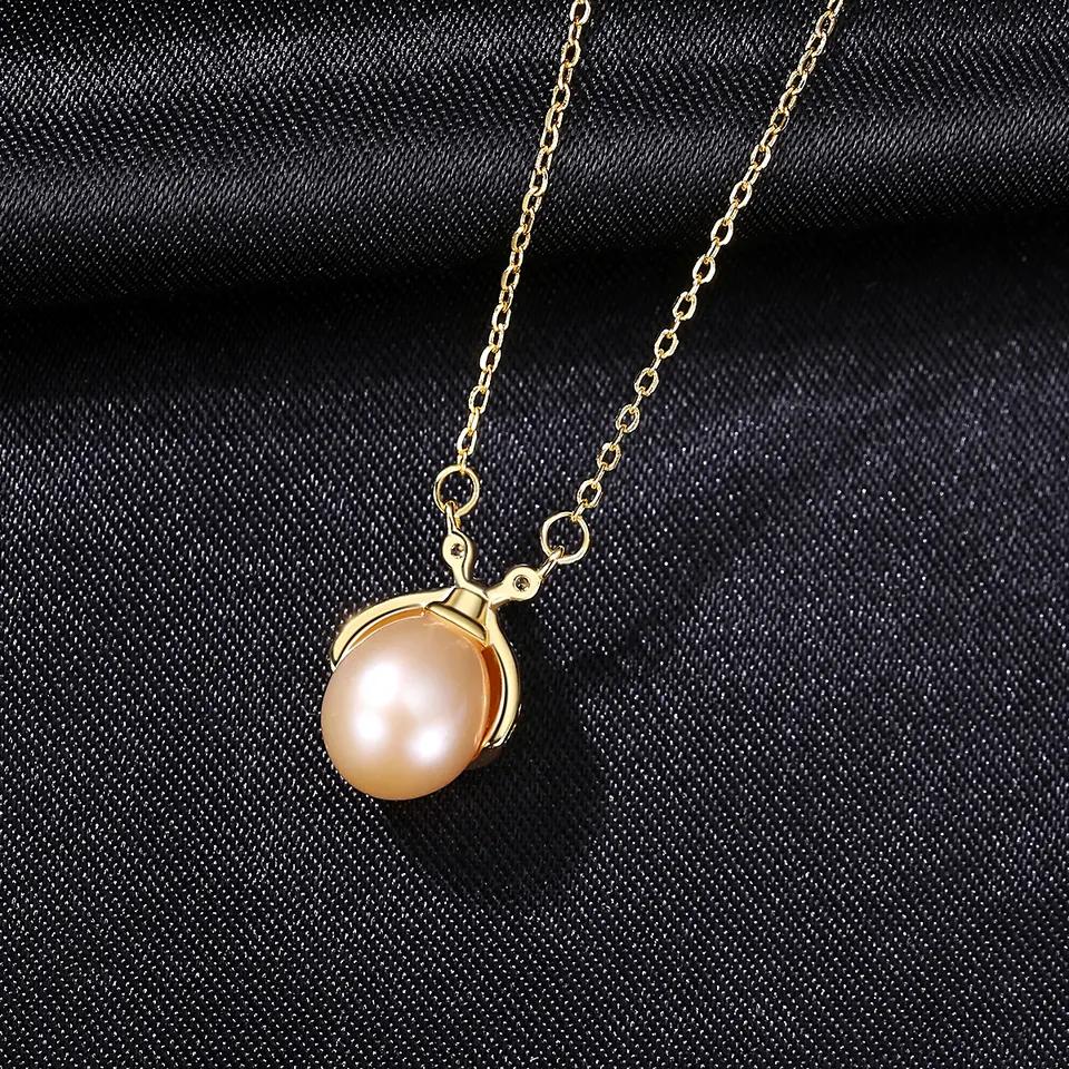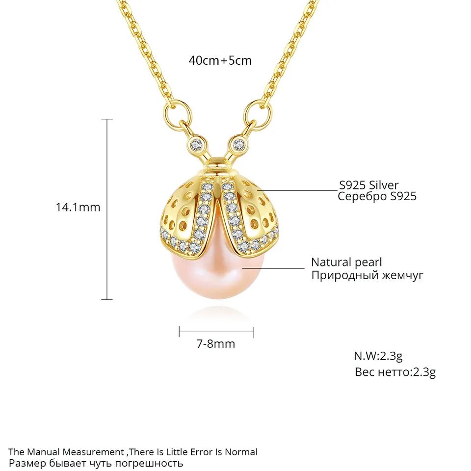 Aetolia 925 Sterling Silver Natural Freshwater Pearl Necklace Cute Coccinella Pendant Necklace FN-0290