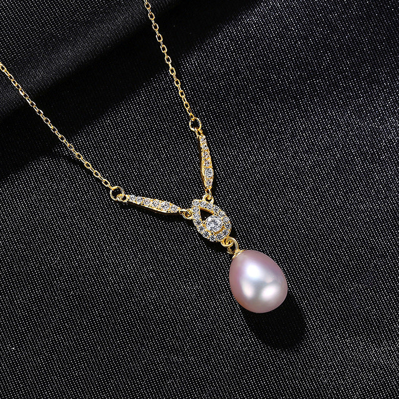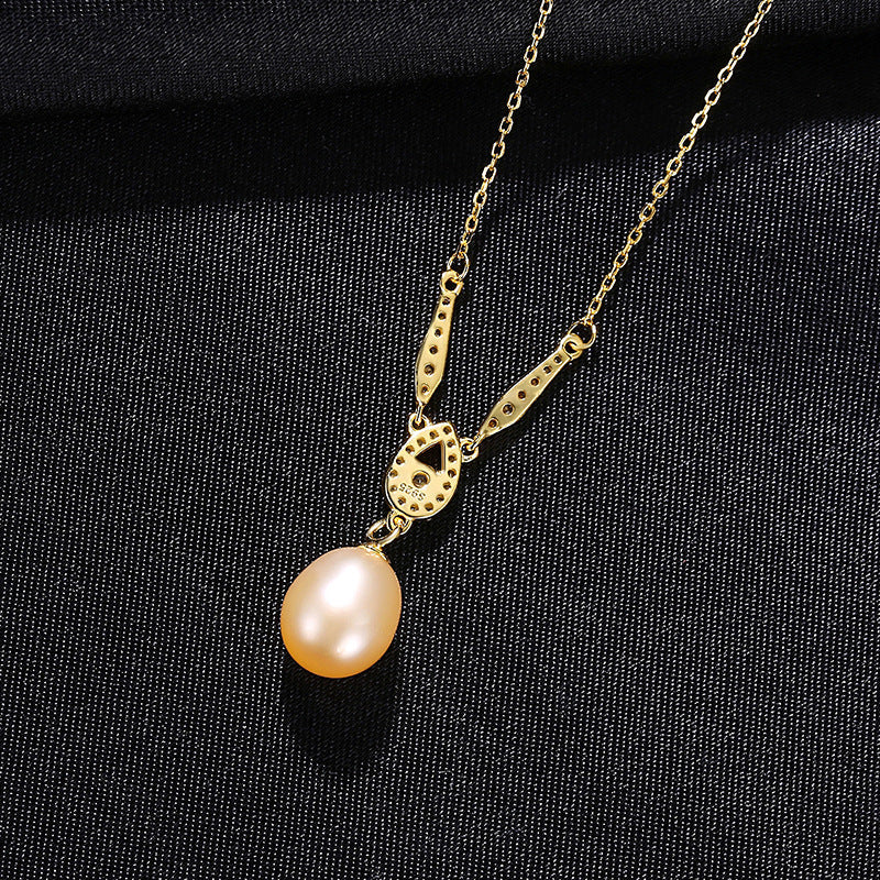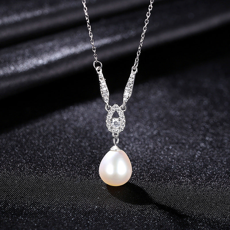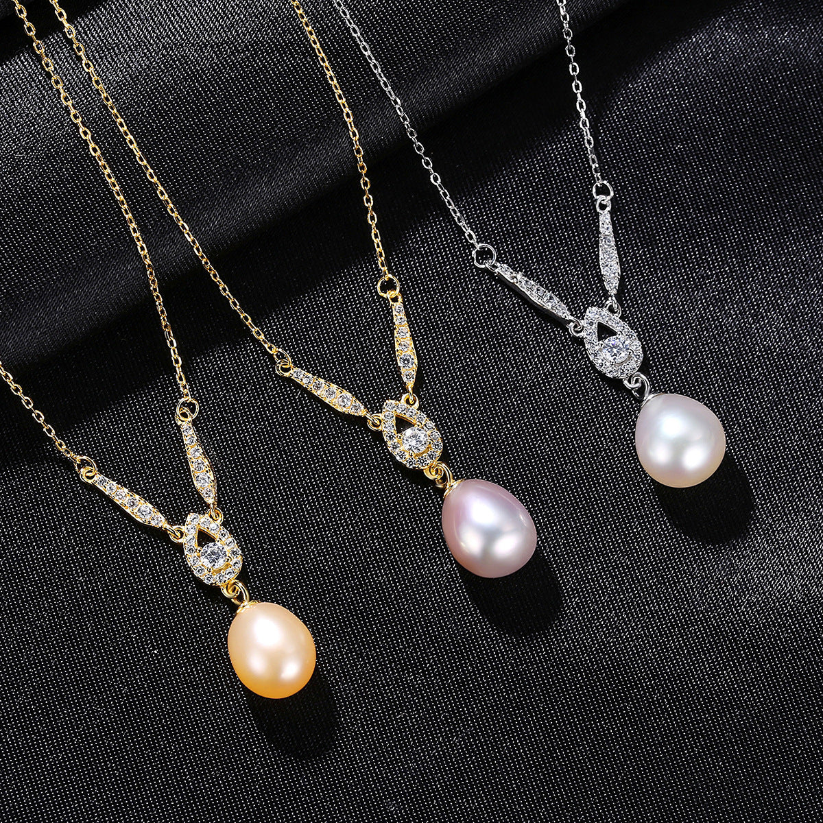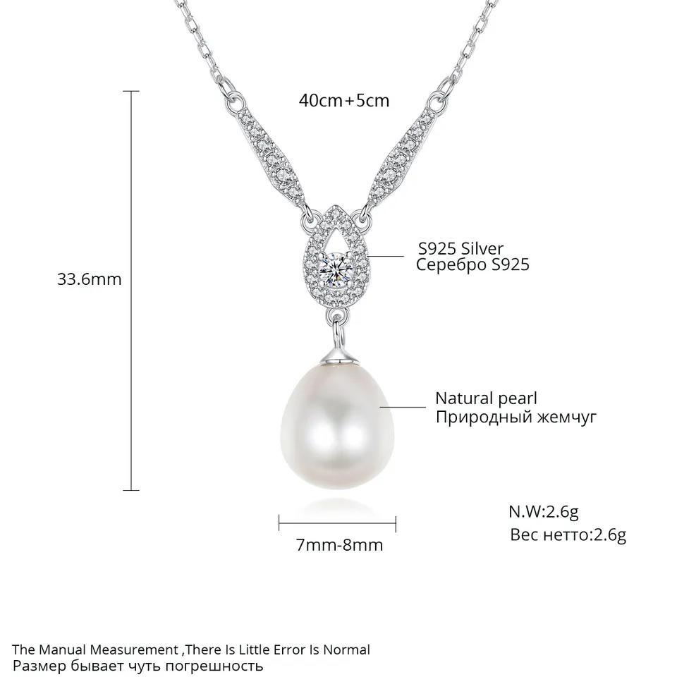 Aetolia 925 Sterling Silver Natural Freshwater Pearl Necklace Pear Shaped Solitaire CZ Diamond Pendant Necklace FN-0275
