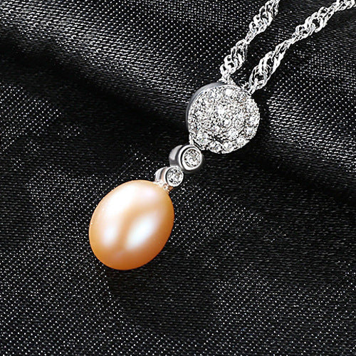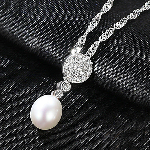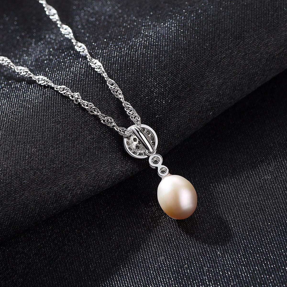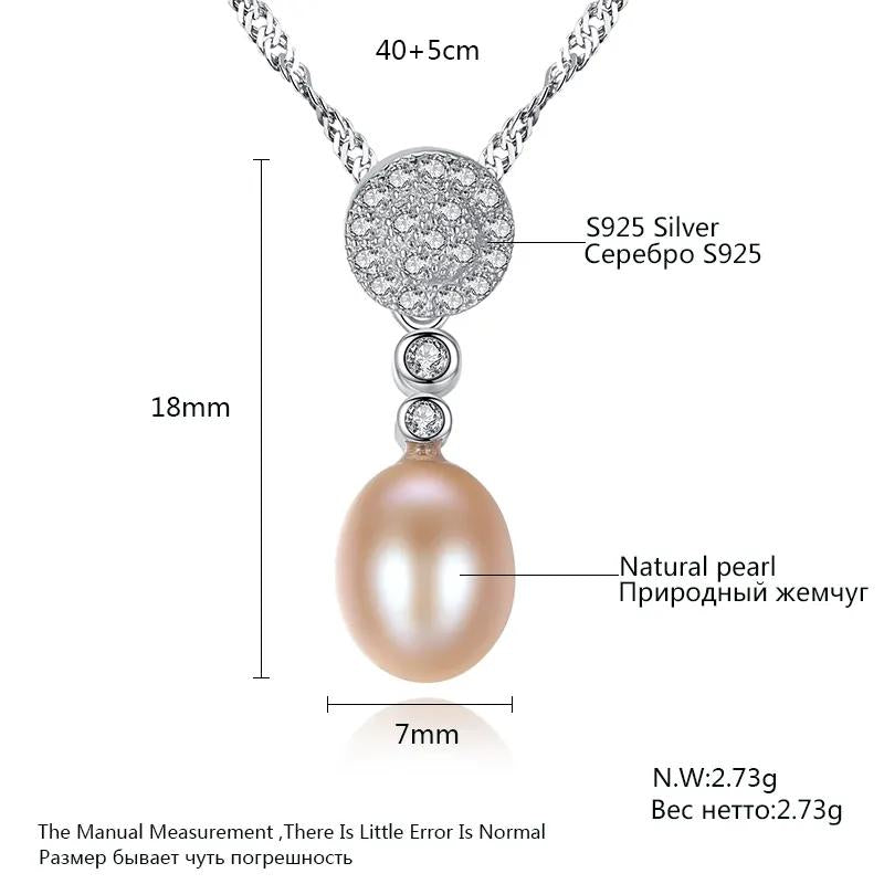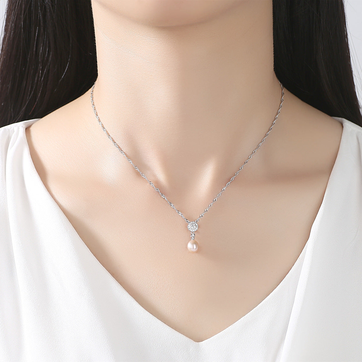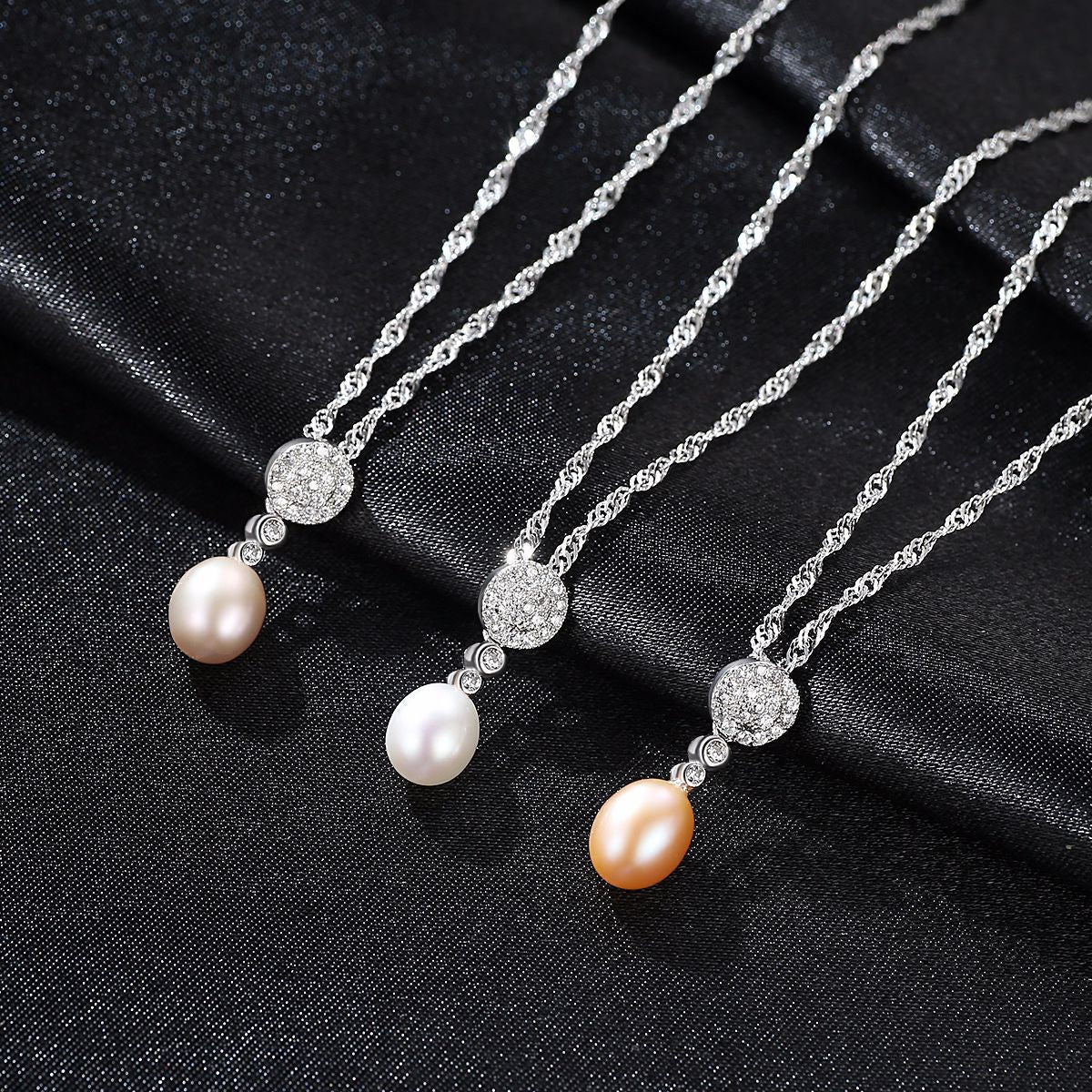 Aetolia 925 Sterling Silver Natural Freshwater Pearl Necklace Disc Halo CZ Diamond Pendant Necklace FN0037